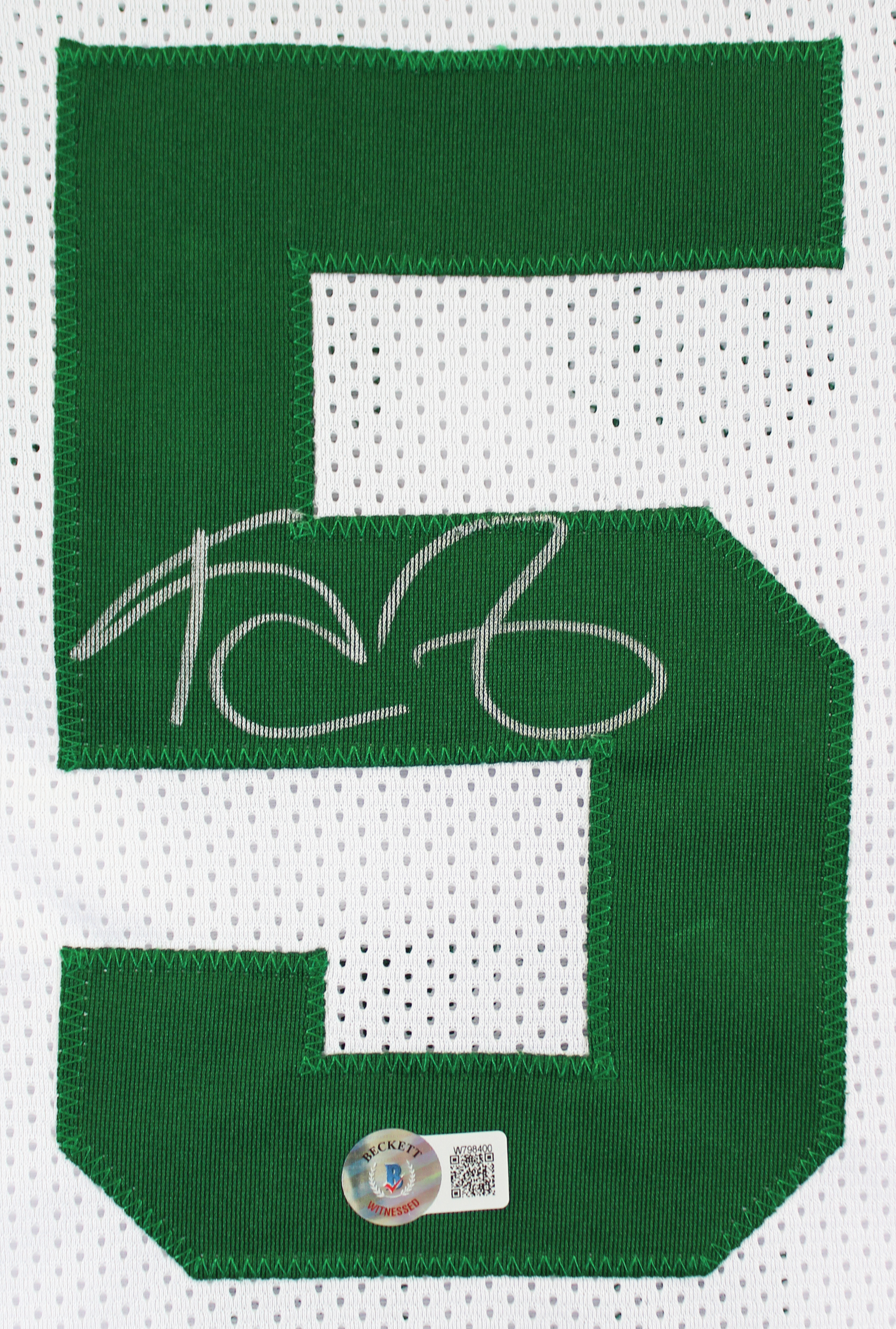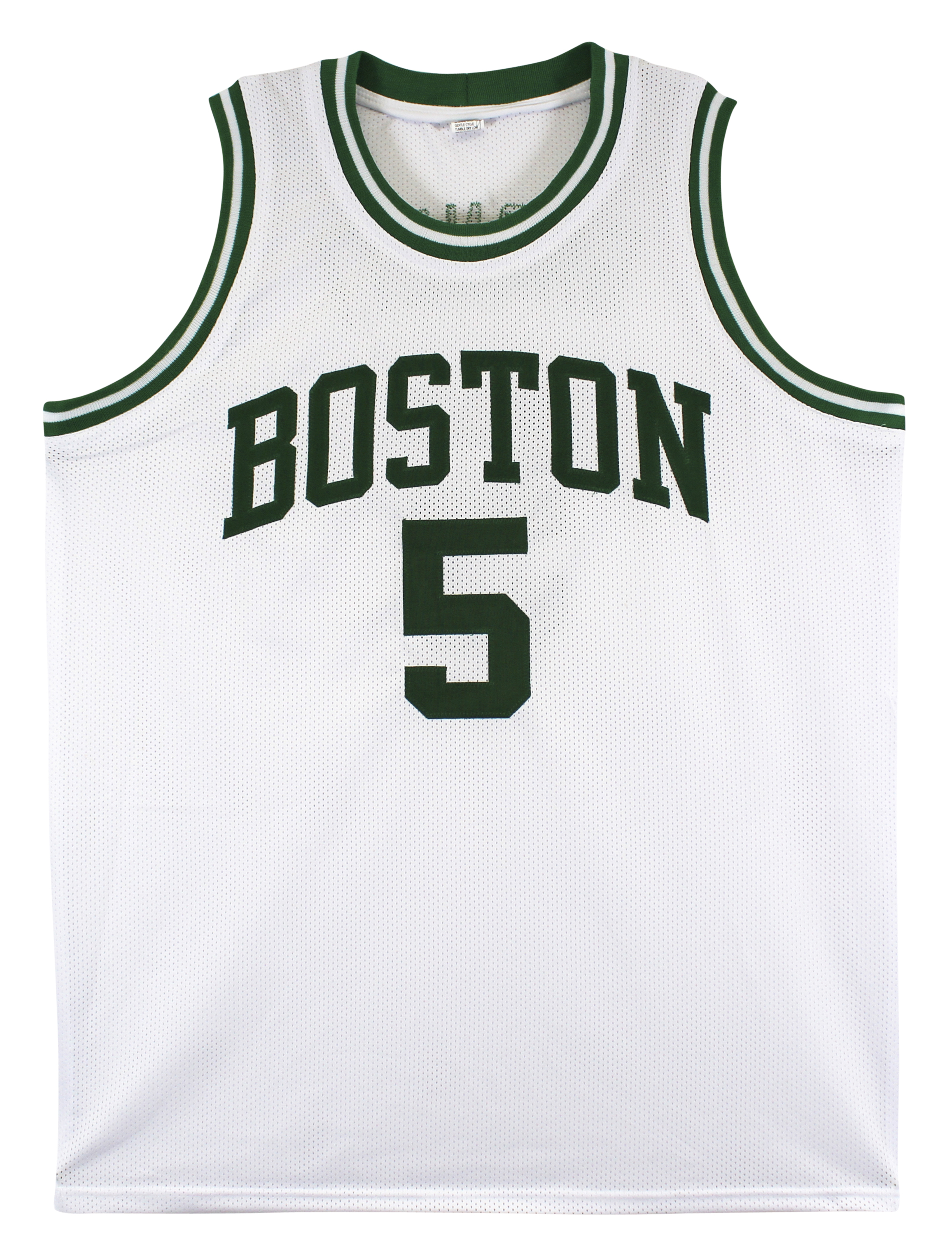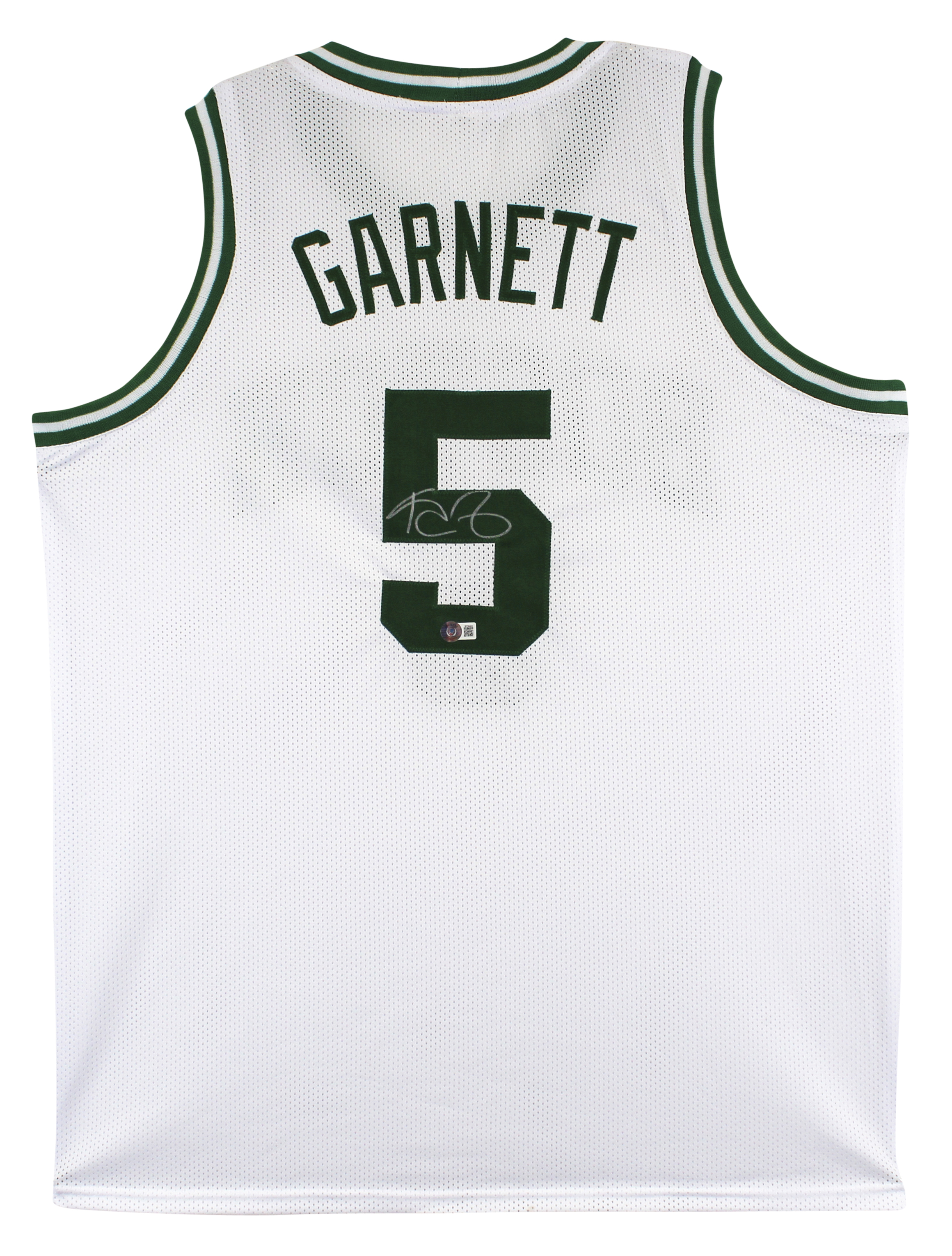 This Autographed White Pro Style Jersey has been Personally Signed by Kevin Garnett of the Boston Celtics. This item is 100% Authentic to include a hologram by Beckett Authentication Services. This item will come with an affixed Beckett Authentication Services (BAS) authentication sticker, which includes a scannable QR code to verify authenticity. Please note that Beckett no longer provides serial-numbered COA cards, and the attached BAS sticker will serve as the complete authentication for this item. This is a BAS Witnessed Protection Program item which means a Beckett Authentication Service representative was present when this item was being signed. We conducted an autograph signing with Kevin Garnett where multiples of the same item were signed. While the photographs are representative of this item, the size, placement and strength of the signature may vary. Each item is hand signed, therefore, each autograph is unique. This item can be verified through BAS Witnessed. This is a X-Large sized, non-branded, custom-stitched Jersey.