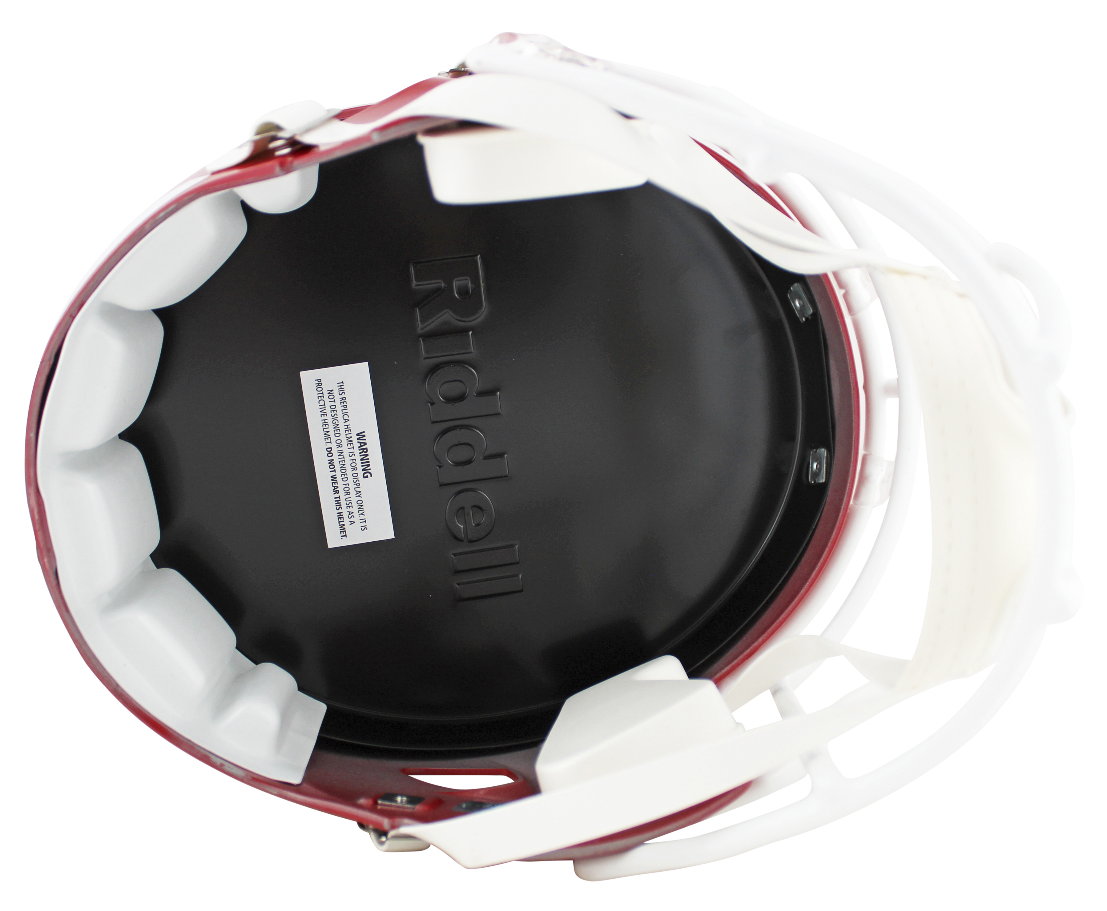 This Autographed Full Size Speed Rep Helmet has been Personally Signed by Nick Bolton of the Kansas City Chiefs. This item is 100% Authentic to include a hologram by Beckett Authentication Services. This item will come with an affixed Beckett Authentication Services (BAS) authentication sticker, which includes a scannable QR code to verify authenticity. Please note that Beckett no longer provides serial-numbered COA cards, and the attached BAS sticker will serve as the complete authentication for this item. This is a BAS Witnessed Protection Program item which means a Beckett Authentication Service representative was present when this item was being signed. We conducted an autograph signing with Nick Bolton where multiples of the same item were signed. While the photographs are representative of this item, the size, placement and strength of the signature may vary. Each item is hand signed, therefore, each autograph is unique. This item can be verified through BAS Witnessed.