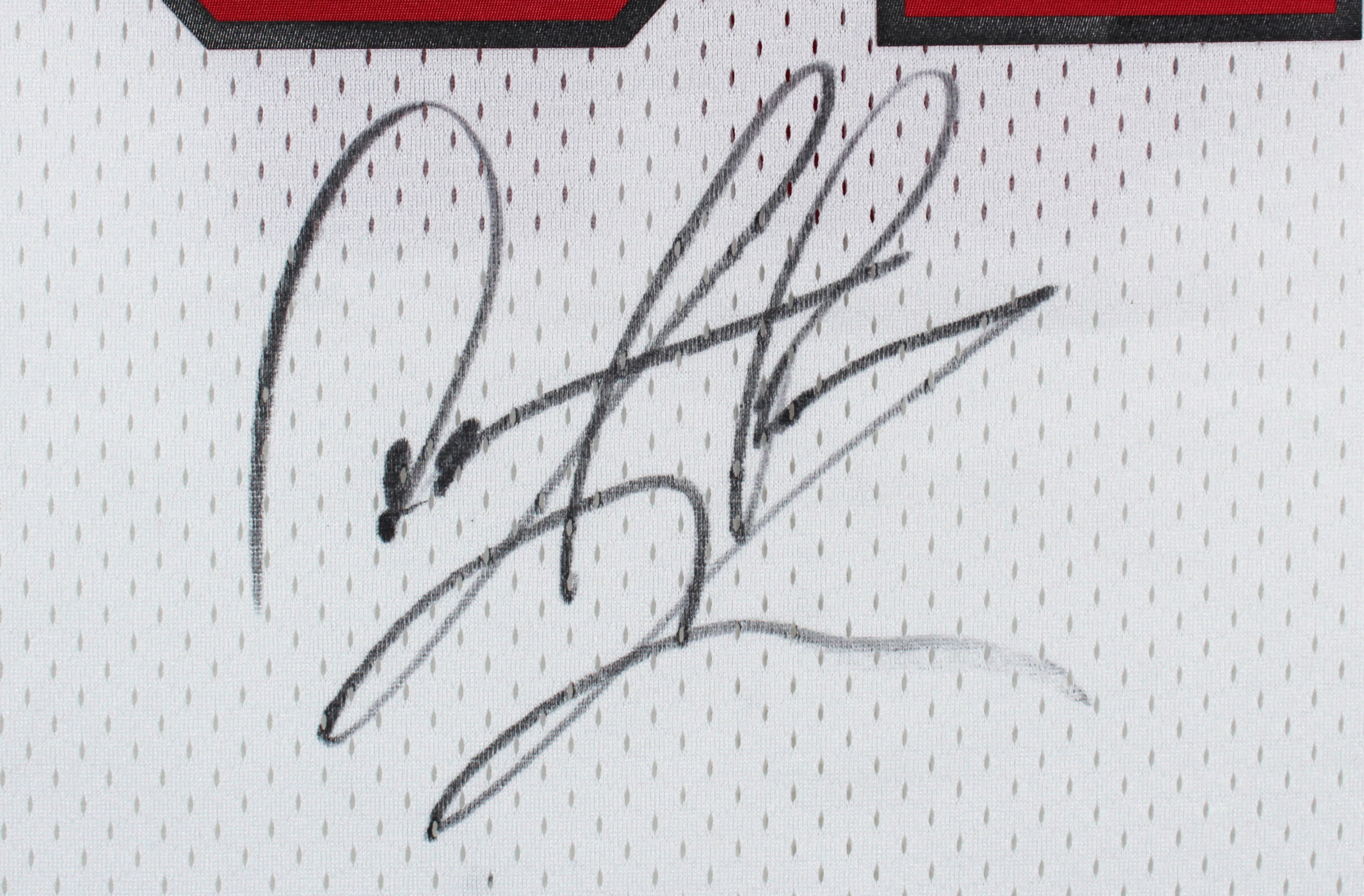 This Autographed White Mitchell & Ness Hardwood Classics Swingman Jersey has been Personally Signed by Dennis Rodman of the Chicago Bulls. This item is 100% Authentic to include a hologram by Beckett Authentication Services. This item will come with an affixed Beckett Authentication Services (BAS) authentication sticker, which includes a scannable QR code to verify authenticity. Please note that Beckett no longer provides serial-numbered COA cards, and the attached BAS sticker will serve as the complete authentication for this item. This is a BAS Witnessed Protection Program item which means a Beckett Authentication Service representative was present when this item was being signed. We conducted an autograph signing with Dennis Rodman where multiples of the same item were signed. While the photographs are representative of this item, the size, placement and strength of the signature may vary. Each item is hand signed, therefore, each autograph is unique. This item can be verified through BAS Witnessed. This is a X-Large sized, non-branded, custom-stitched Jersey.