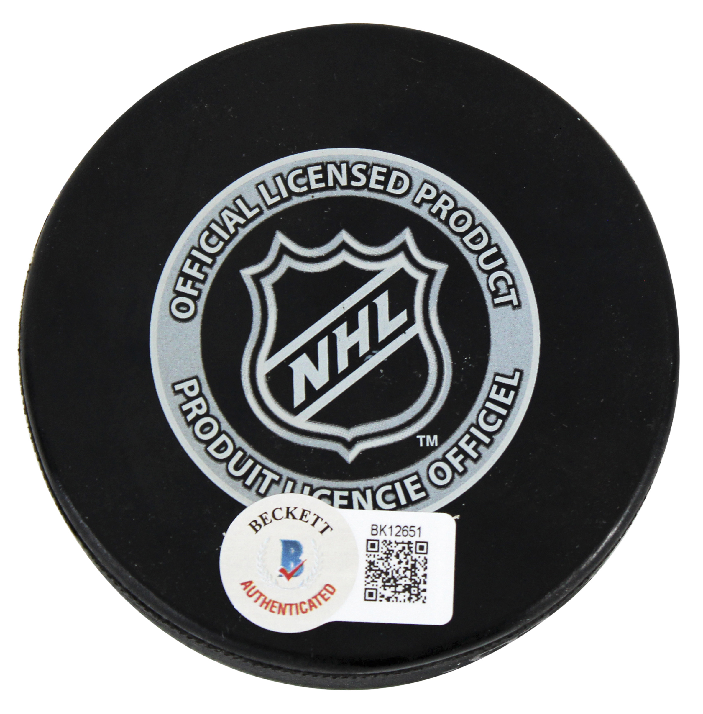 This Autographed 500 Goal Milestone Commemorative Puck has been Personally Signed by Jeremy Roenick of the Arizona Coyotes. This item is 100% Authentic to include a hologram by Beckett Authentication Services. This item will come with an affixed Beckett Authentication Services (BAS) authentication sticker, which includes a scannable QR code to verify authenticity. Please note that Beckett no longer provides serial-numbered COA cards, and the attached BAS sticker will serve as the complete authentication for this item. The authenticity can be verified on Beckett Authentication Services website.