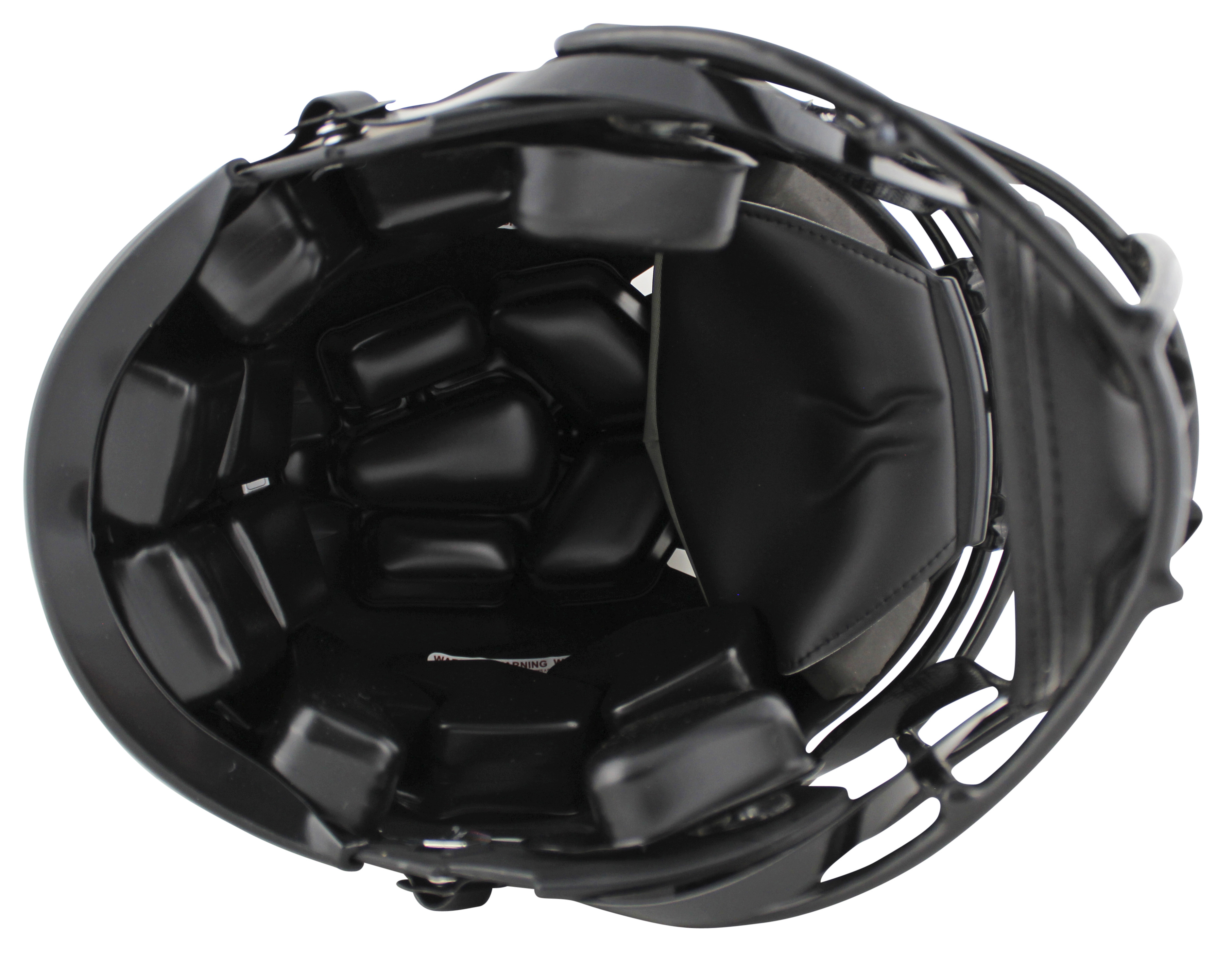 This Autographed Alternate Eclipse Riddell Authentic Full Size Speed Proline Helmet has been Personally Signed by Randy Moss of the Minnesota Vikings. This item is 100% Authentic to include a hologram by Beckett Authentication Services. This item will come with the new Beckett Authentication hologram that has a scannable QR code rather than the traditional COA. If you would like to have a COA, you are welcome to reach out to Beckett for a printed certification once you receive your item. This is a BAS Witnessed Protection Program item which means a Beckett Authentication Service representative was present when this item was being signed. We conducted an autograph signing with Randy Moss where multiples of the same item were signed. While the photographs are representative of this item, the size, placement and strength of the signature may vary. Each item is hand signed, therefore, each autograph is unique. This item can be verified through BAS Witnessed.