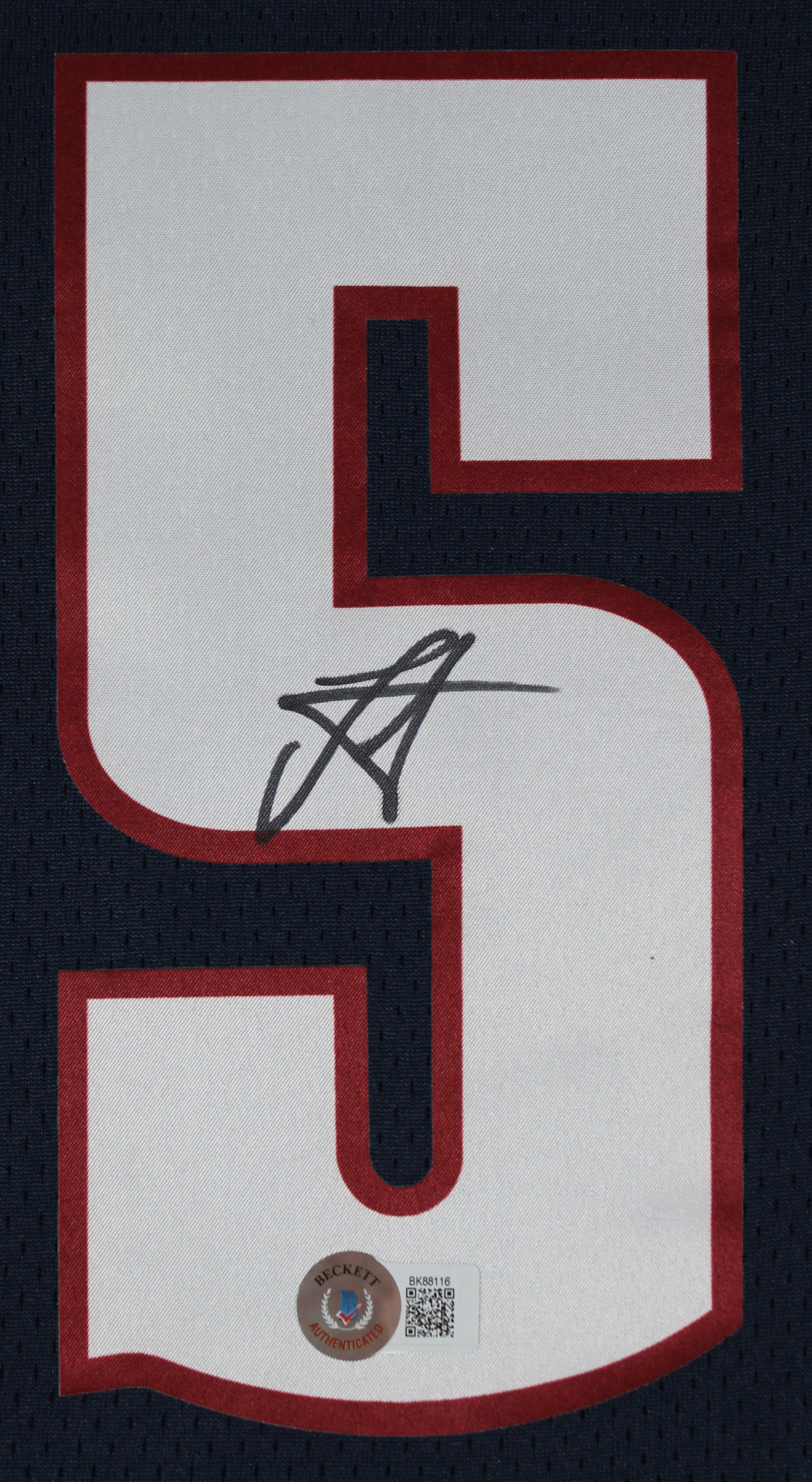 This Autographed Navy Blue Nike Swingman Jersey has been Personally Signed by Nikola Jokic of the Denver Nuggets. This item is 100% Authentic to include a hologram by Beckett Authentication Services. This item will come with an affixed Beckett Authentication Services (BAS) authentication sticker, which includes a scannable QR code to verify authenticity. Please note that Beckett no longer provides serial-numbered COA cards, and the attached BAS sticker will serve as the complete authentication for this item. We have multiples of this same item. While the photographs are representative of this item, the size, placement and strength of the signature may vary. Each item is hand signed, therefore, each autograph is unique. This is a X-Large sized, non-branded, custom-stitched Jersey.