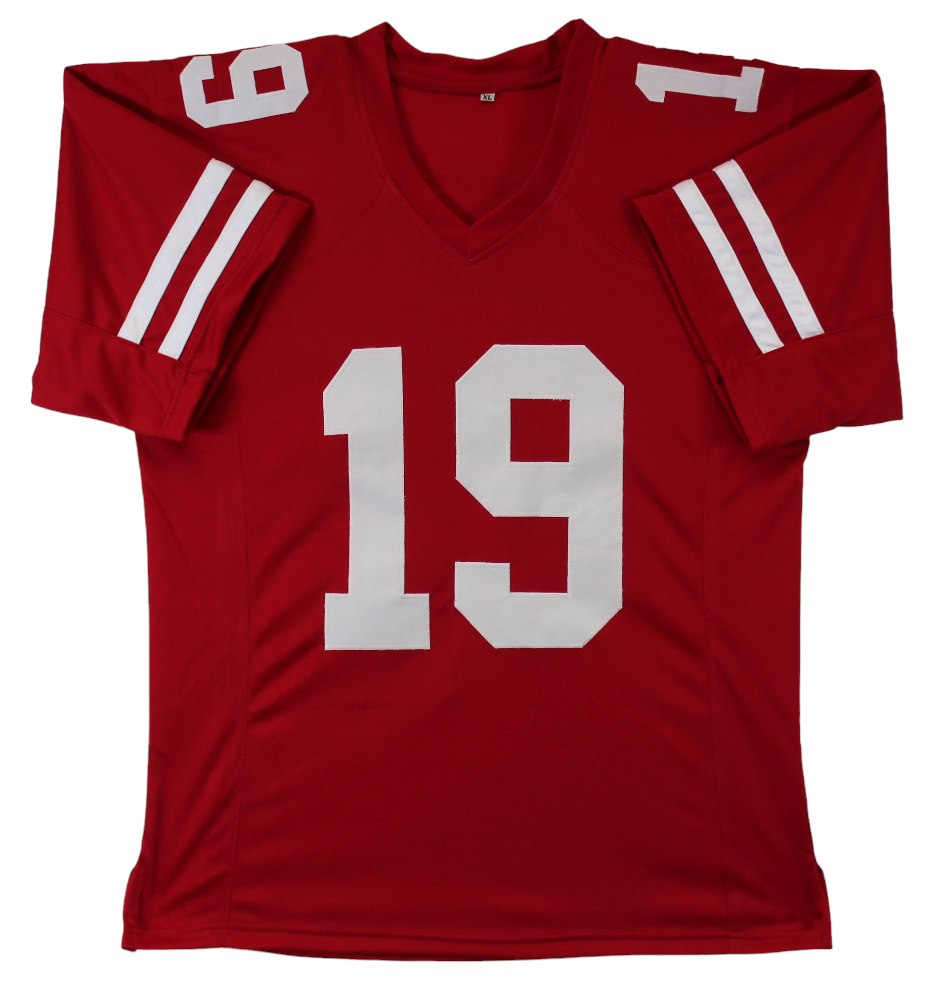 This Autographed Red Pro Style Jersey has been Personally Signed by Deebo Samuel of the San Francisco 49ers. This item is 100% Authentic to include a Certificate of Authenticity (COA) / hologram by JSA. We conducted an autograph signing with Deebo Samuel where multiples of the same item were signed. While the photographs are representative of this item, the size, placement and strength of the signature may vary. Each item is hand signed, therefore, each autograph is unique. This item can be verified through JSA. This is a X-Large sized, non-branded, custom-stitched Jersey.