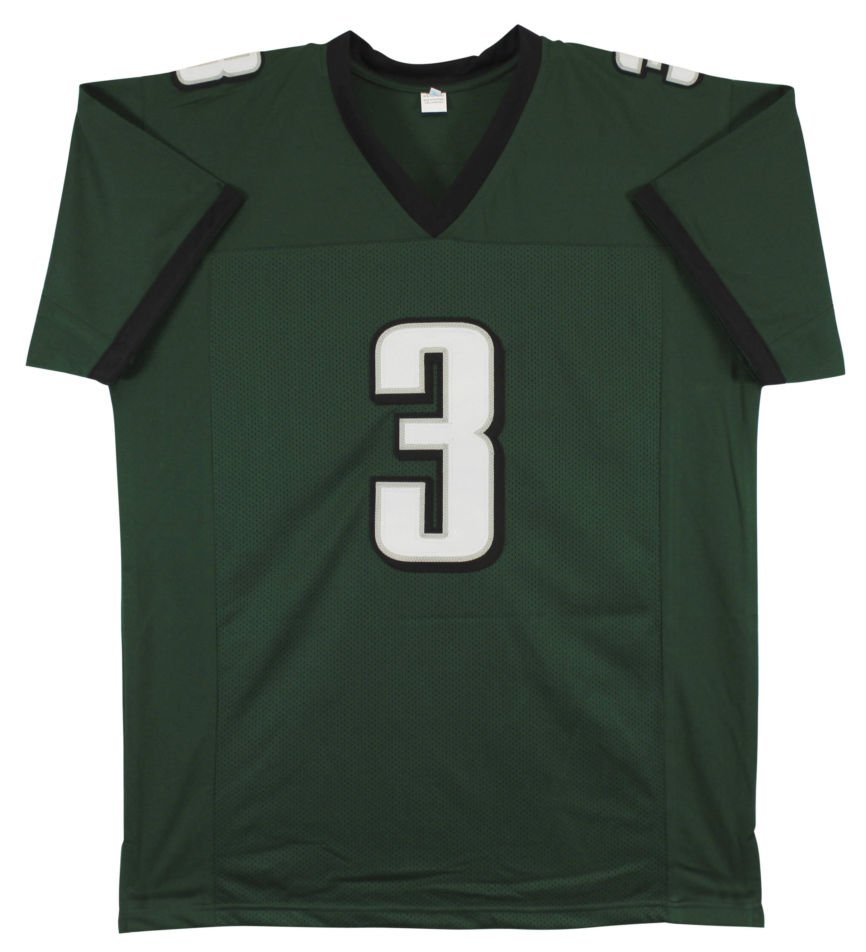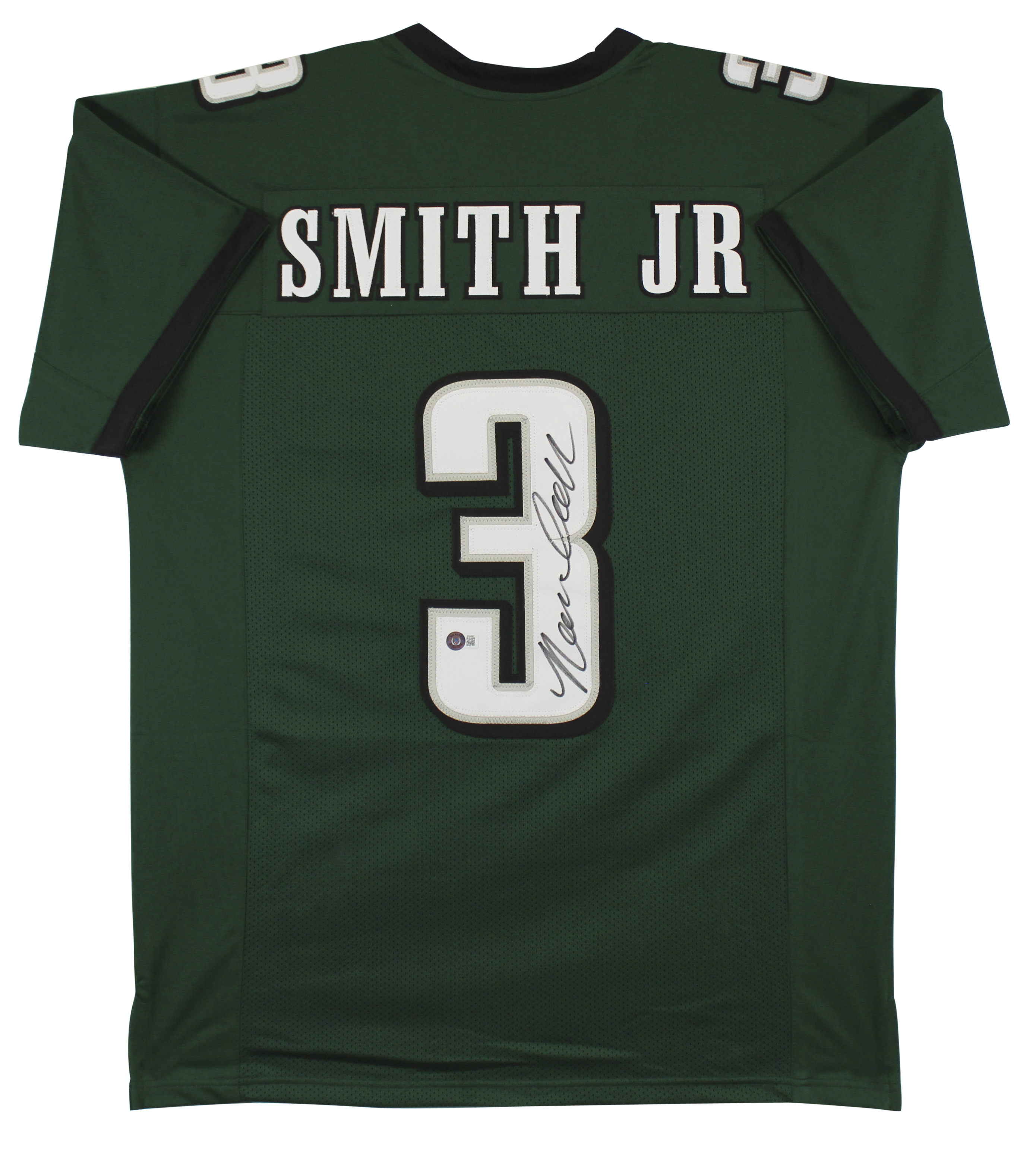 This Autographed Green Pro Style Jersey has been Personally Signed by Nolan Smith of the Philadelphia Eagles. This item is 100% Authentic to include a hologram by Beckett Authentication Services. This item will come with an affixed Beckett Authentication Services (BAS) authentication sticker, which includes a scannable QR code to verify authenticity. Please note that Beckett no longer provides serial-numbered COA cards, and the attached BAS sticker will serve as the complete authentication for this item. This is a BAS Witnessed Protection Program item which means a Beckett Authentication Service representative was present when this item was being signed. We conducted an autograph signing with Nolan Smith where multiples of the same item were signed. While the photographs are representative of this item, the size, placement and strength of the signature may vary. Each item is hand signed, therefore, each autograph is unique. This item can be verified through BAS Witnessed. This is a X-Large sized, non-branded, custom-stitched Jersey.