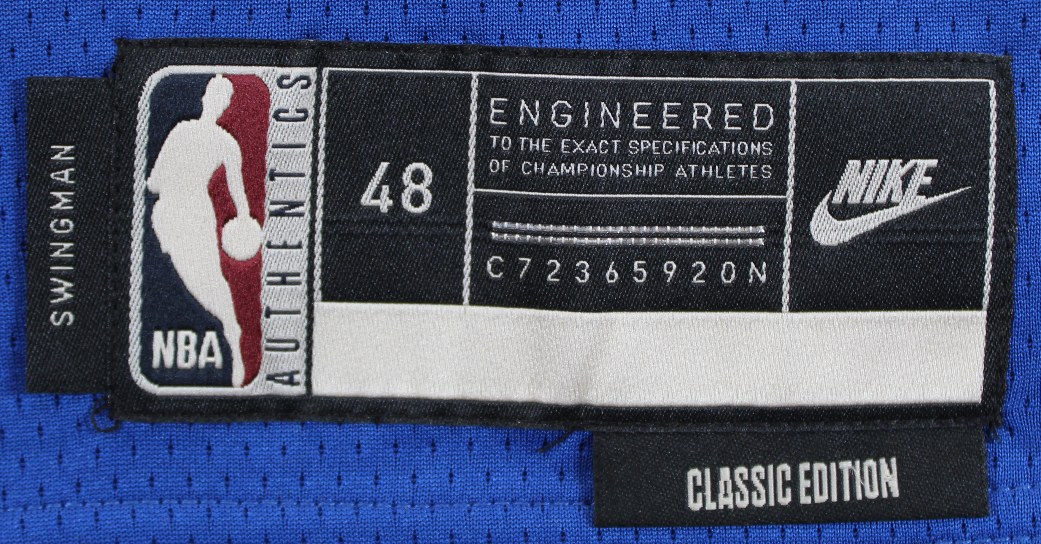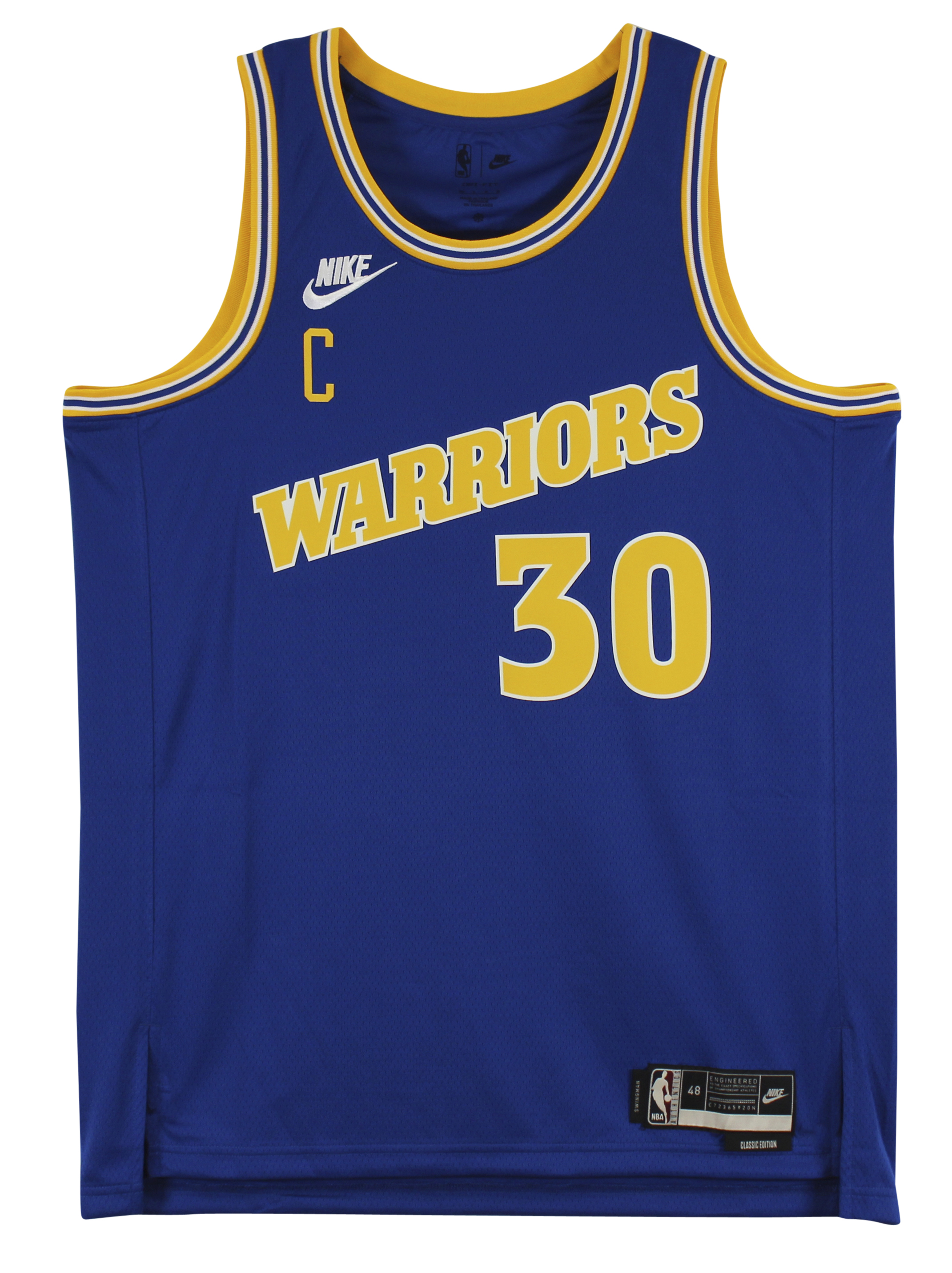 This Autographed Blue Nike Classics Edition Swingman Jersey has been Personally Signed by Stephen Curry of the Golden State Warriors. This item is 100% Authentic to include a Certificate of Authenticity (COA) / hologram by JSA. We have multiples of this same item. While the photographs are representative of this item, the size, placement and strength of the signature may vary. Each item is hand signed, therefore, each autograph is unique. This is a X-Large sized, non-branded, custom-stitched Jersey.