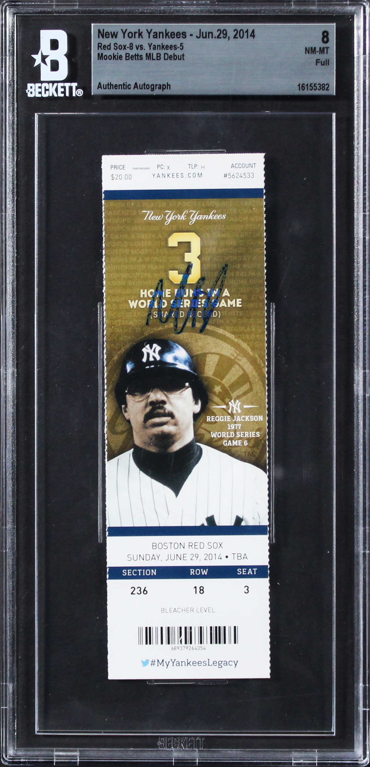 Red Sox Mookie Betts Signed 6/29/14 MLB Debut Ticket Graded NM-MT 8 BAS Slabbed