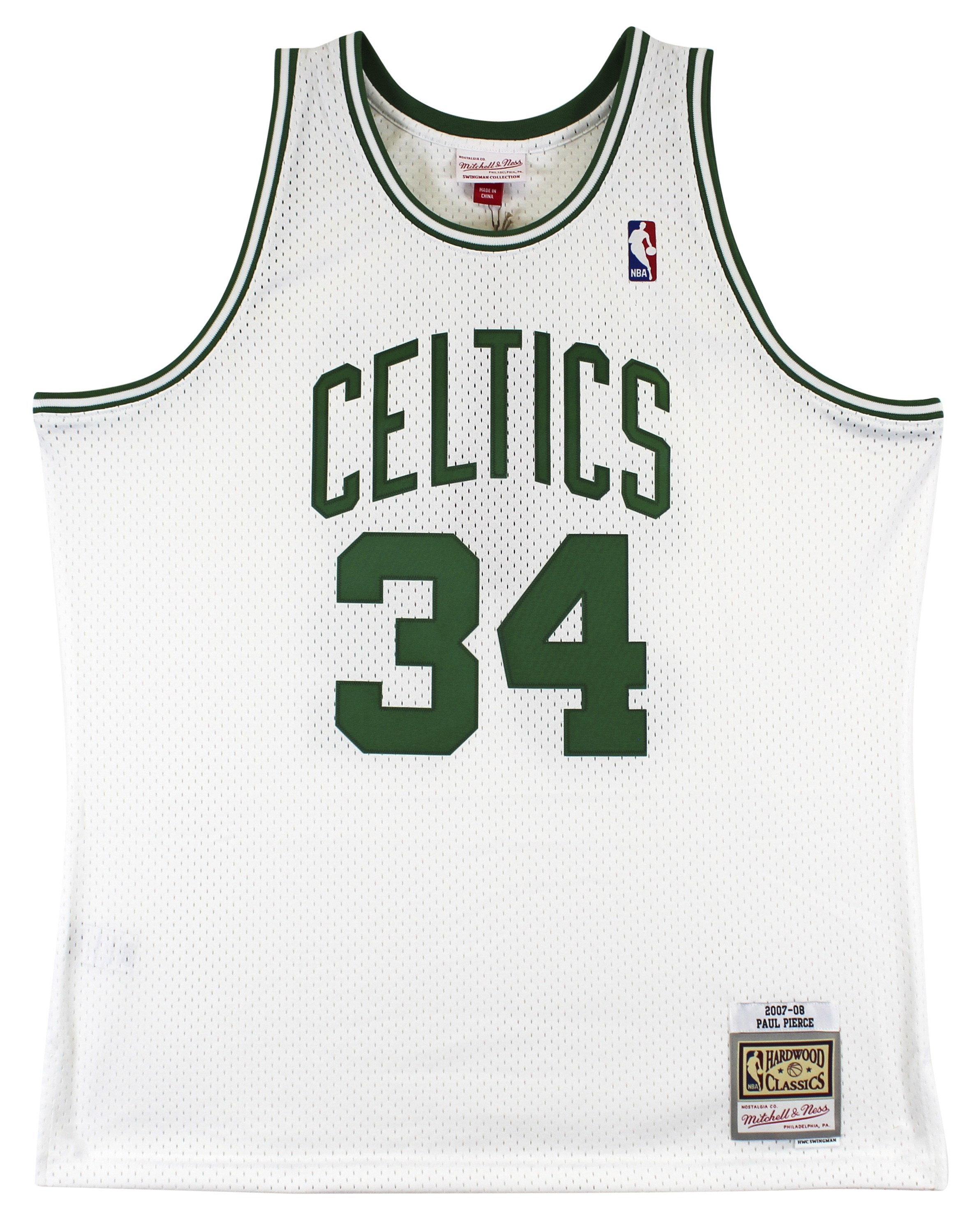 This Autographed White Mitchell & Ness 2007 Hardwood Classics Swingman Jersey with the inscription of "2008 Finals MVP" has been Personally Signed by Paul Pierce of the Boston Celtics. This item is 100% Authentic to includes a numbered hologram by Fanatics. We conducted an autograph signing with Paul Pierce where multiples of the same item were signed. While the photographs are representative of this item, the size, placement and strength of the signature may vary. Each item is hand signed, therefore, each autograph is unique. This item can be verified through Fanatics. This is a X-Large sized Jersey.