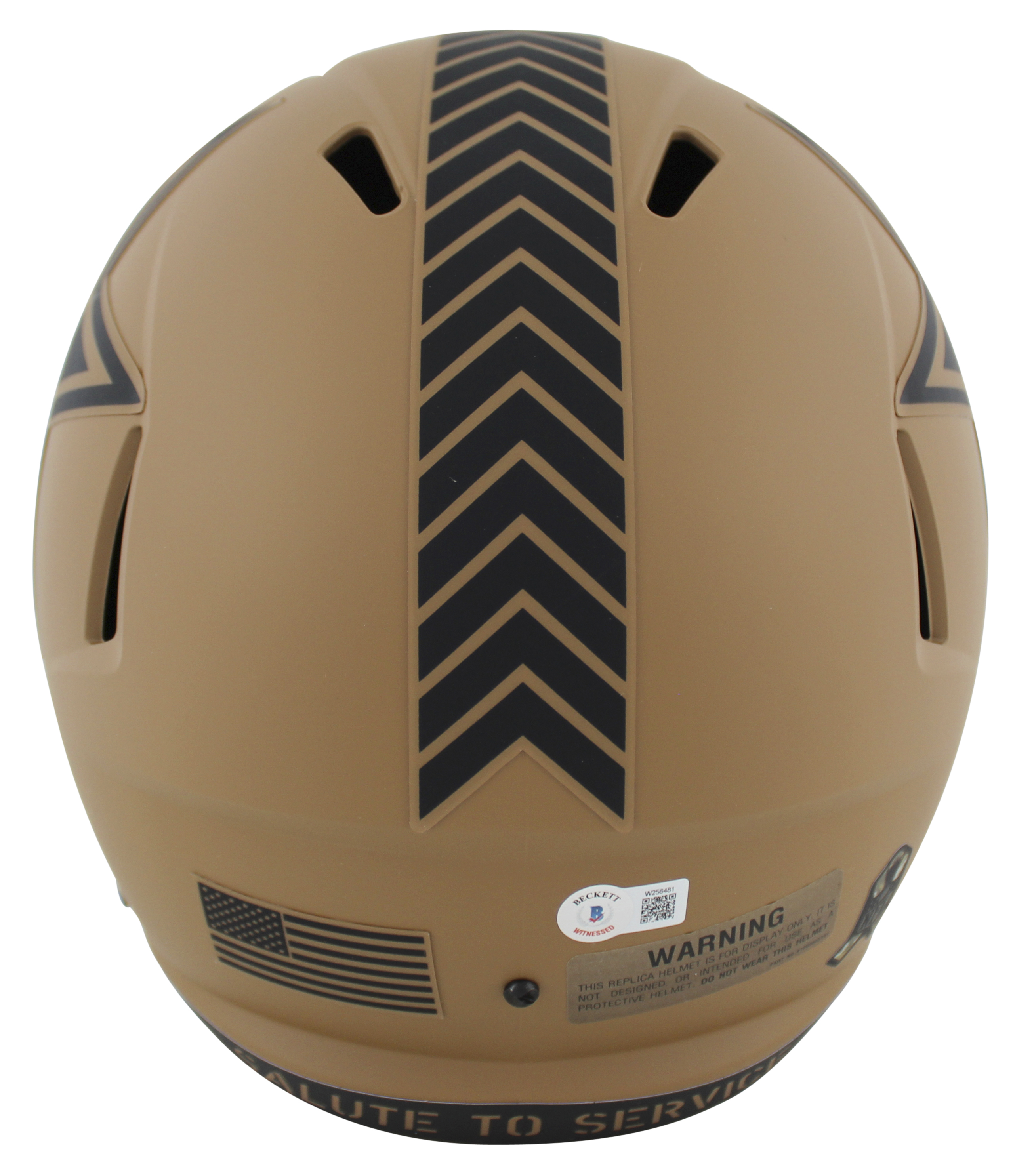 Cowboys Roger Staubach Signed Salute To Service II F/S Speed Rep Helmet BAS Wit