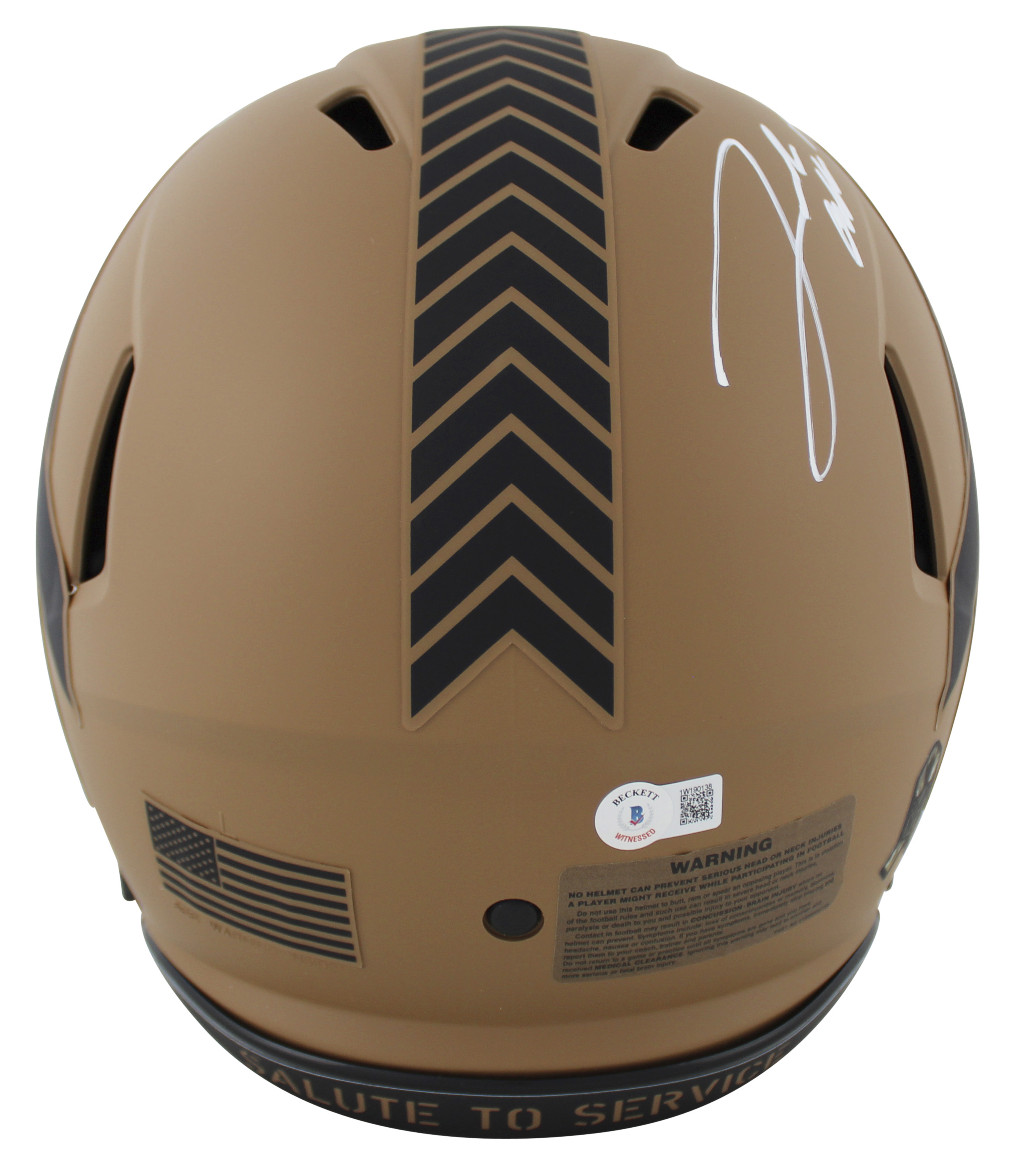 This Autographed Alternate 2023 Salute To Service II Riddell Authentic Full Size Speed Proline Helmet has been Personally Signed by Josh Allen of the Buffalo Bills. This item is 100% Authentic to include a hologram by Beckett Authentication Services. This item will come with an affixed Beckett Authentication Services (BAS) authentication sticker, which includes a scannable QR code to verify authenticity. Please note that Beckett no longer provides serial-numbered COA cards, and the attached BAS sticker will serve as the complete authentication for this item. This is a BAS Witnessed Protection Program item which means a Beckett Authentication Service representative was present when this item was being signed. We conducted an autograph signing with Josh Allen where multiples of the same item were signed. While the photographs are representative of this item, the size, placement and strength of the signature may vary. Each item is hand signed, therefore, each autograph is unique. This item can be verified through BAS Witnessed.