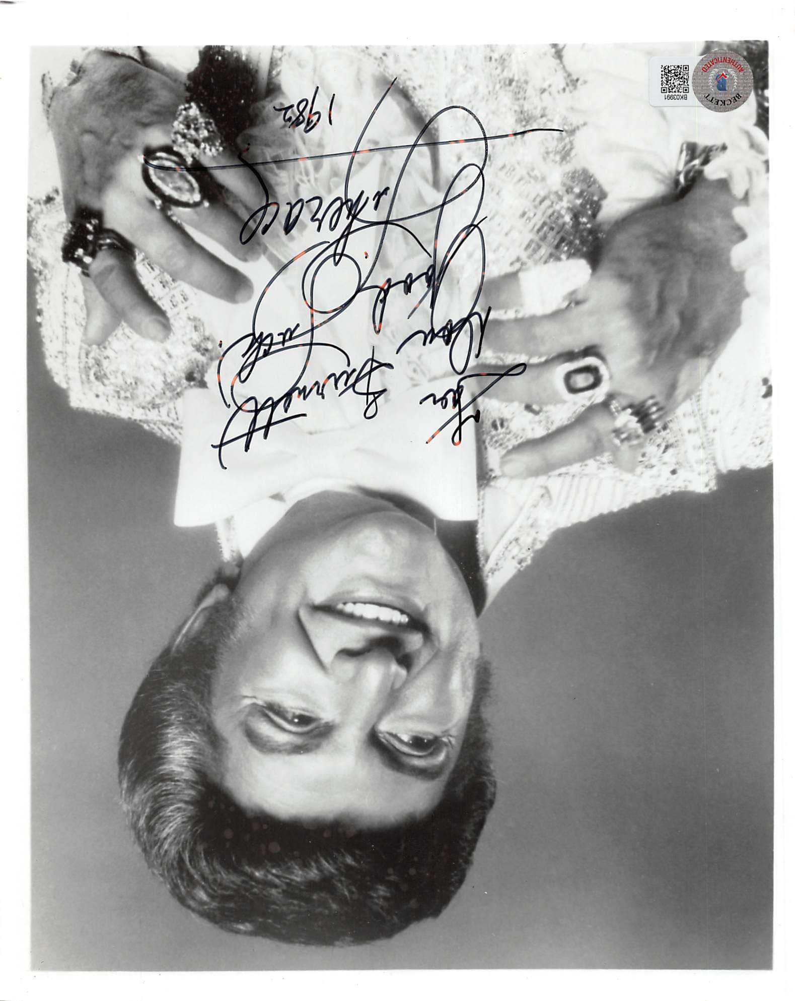 This Autographed 8x10 Photo with the inscription of "For Don Burnett Good Luck 1982" has been Personally Signed by Liberace. This item is 100% Authentic to include a hologram by Beckett Authentication Services. This item may come with the new Beckett Authentication hologram that has a scannable QR code rather than the traditional COA. If you would like to have a COA, you are welcome to reach out to Beckett for a printed certification once you receive your item. The authenticity can be verified on Beckett Authentication Services website.