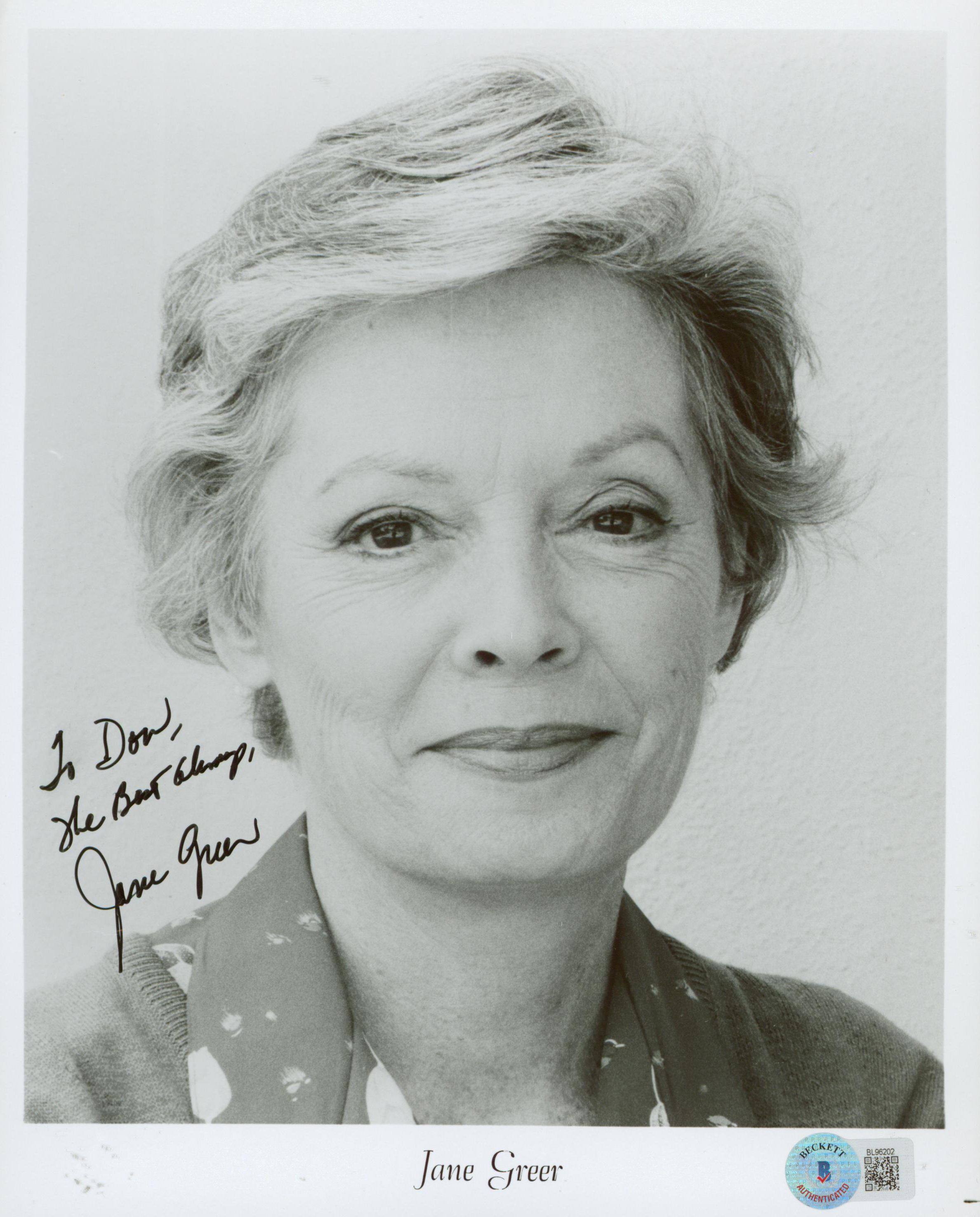 This Autographed 8x10 Photo with the inscription of "To Don, The Best Champ" has been Personally Signed by Jane Greer of Out of the Past. This item is 100% Authentic to include a hologram by Beckett Authentication Services. This item will come with an affixed Beckett Authentication Services (BAS) authentication sticker, which includes a scannable QR code to verify authenticity. Please note that Beckett no longer provides serial-numbered COA cards, and the attached BAS sticker will serve as the complete authentication for this item. The authenticity can be verified on Beckett Authentication Services website.