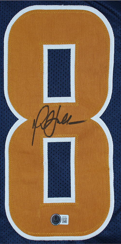 This Autographed Navy Blue Pro Style Jersey has been Personally Signed by Marshall Faulk of the St. Louis Rams. This item is 100% Authentic to include a Certificate of Authenticity (COA) / hologram by Beckett Authentication Services. This is a BAS Witnessed Protection Program item which means a Beckett Authentication Service representative was present when this item was being signed. We conducted an autograph signing with Marshall Faulk where multiples of the same item were signed. While the photographs are representative of this item, the size, placement and strength of the signature may vary. Each item is hand signed, therefore, each autograph is unique. This item can be verified through BAS Witnessed. This is a X-Large sized, non-branded, custom-stitched Jersey.