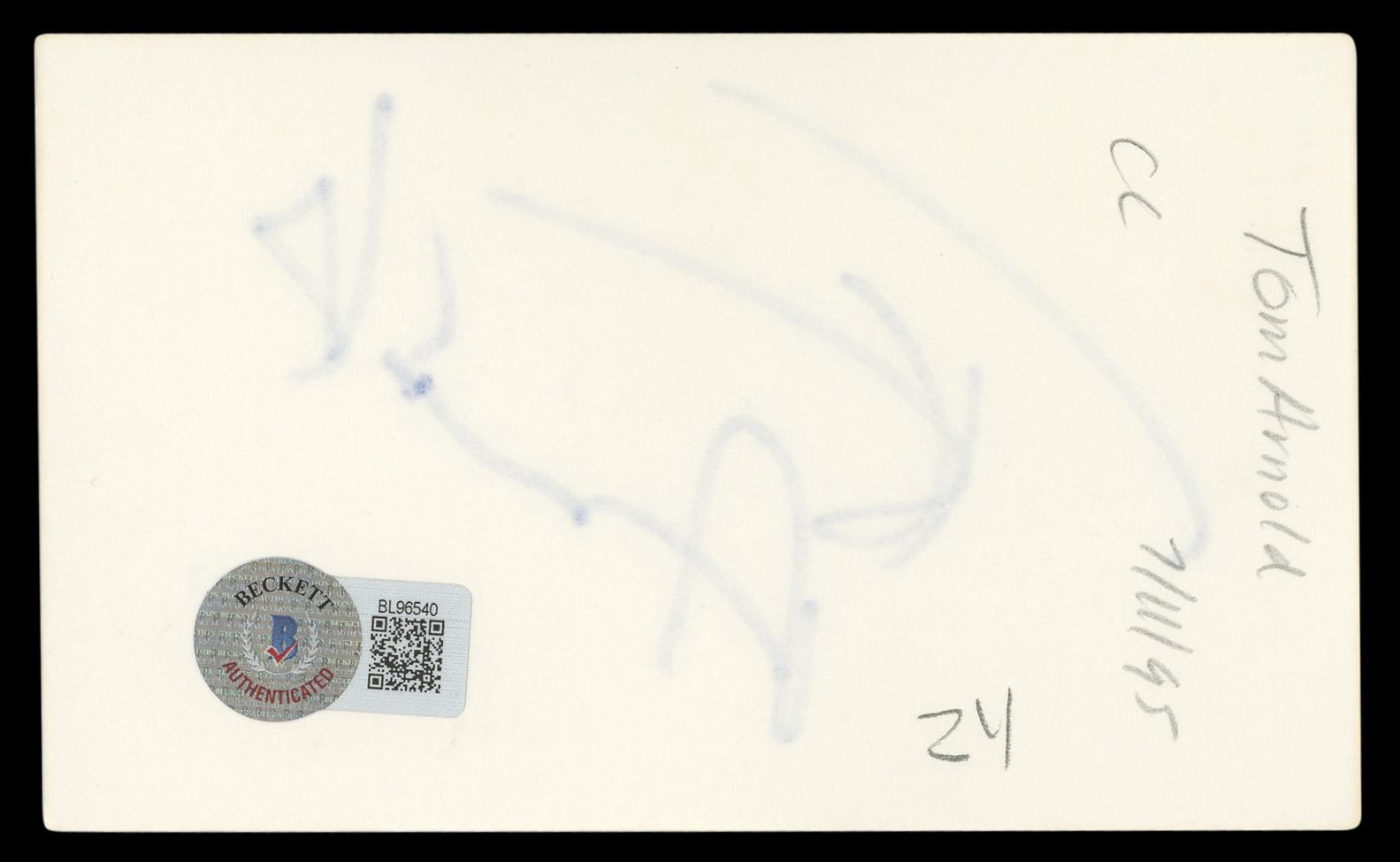 This Autographed 3x5 Index Card has been Personally Signed by Tom Arnold of Roseanne. This item is 100% Authentic to include a hologram by Beckett Authentication Services. This item will come with an affixed Beckett Authentication Services (BAS) authentication sticker, which includes a scannable QR code to verify authenticity. Please note that Beckett no longer provides serial-numbered COA cards, and the attached BAS sticker will serve as the complete authentication for this item. The authenticity can be verified on Beckett Authentication Services website.