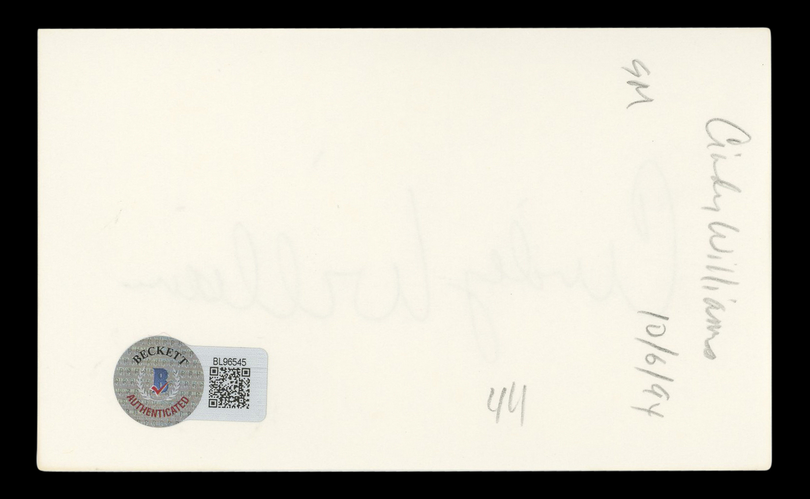 This Autographed 3x5 Index Card has been Personally Signed by Cindy Williams of Happy Days. This item is 100% Authentic to include a hologram by Beckett Authentication Services. This item will come with an affixed Beckett Authentication Services (BAS) authentication sticker, which includes a scannable QR code to verify authenticity. Please note that Beckett no longer provides serial-numbered COA cards, and the attached BAS sticker will serve as the complete authentication for this item. The authenticity can be verified on Beckett Authentication Services website.
