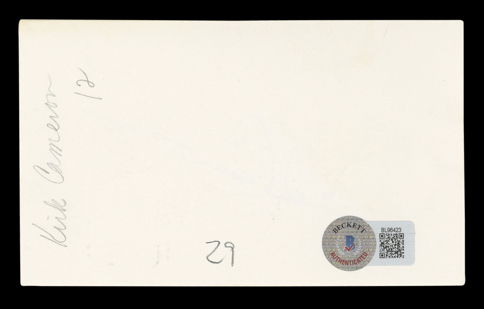 This Autographed 3x5 Index Card has been Personally Signed by Kirk Cameron of Growing Pains. This item is 100% Authentic to include a hologram by Beckett Authentication Services. This item will come with an affixed Beckett Authentication Services (BAS) authentication sticker, which includes a scannable QR code to verify authenticity. Please note that Beckett no longer provides serial-numbered COA cards, and the attached BAS sticker will serve as the complete authentication for this item. The authenticity can be verified on Beckett Authentication Services website.