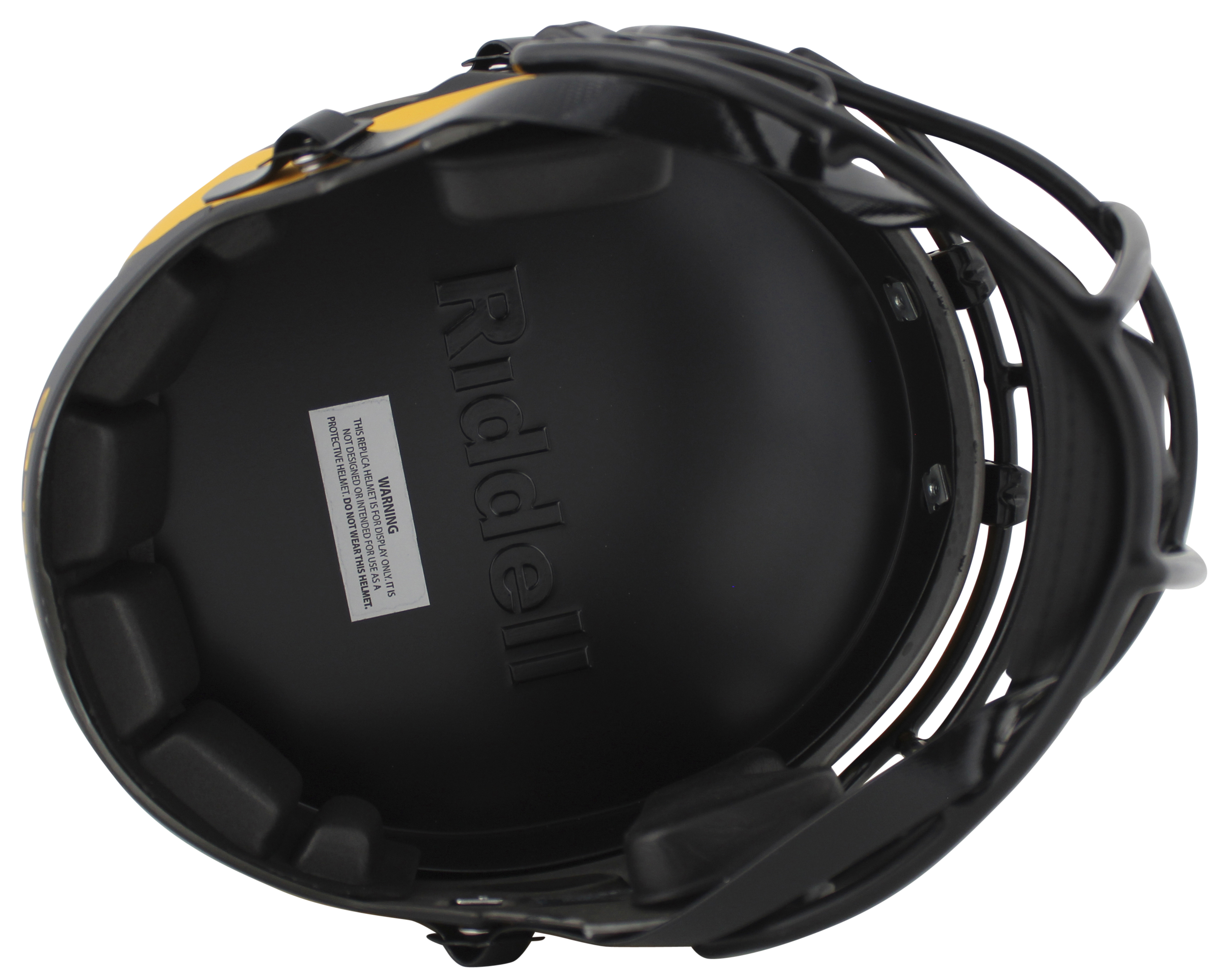 This Autographed Alternate Eclipse Riddell Full Size Speed Rep Helmet has been Personally Signed by Aaron Donald of the Los Angeles Rams. This item is 100% Authentic to include a hologram by Beckett Authentication Services. This item will come with an affixed Beckett Authentication Services (BAS) authentication sticker, which includes a scannable QR code to verify authenticity. Please note that Beckett no longer provides serial-numbered COA cards, and the attached BAS sticker will serve as the complete authentication for this item. This is a BAS Witnessed Protection Program item which means a Beckett Authentication Service representative was present when this item was being signed. We conducted an autograph signing with Aaron Donald where multiples of the same item were signed. While the photographs are representative of this item, the size, placement and strength of the signature may vary. Each item is hand signed, therefore, each autograph is unique. This item can be verified through BAS Witnessed.