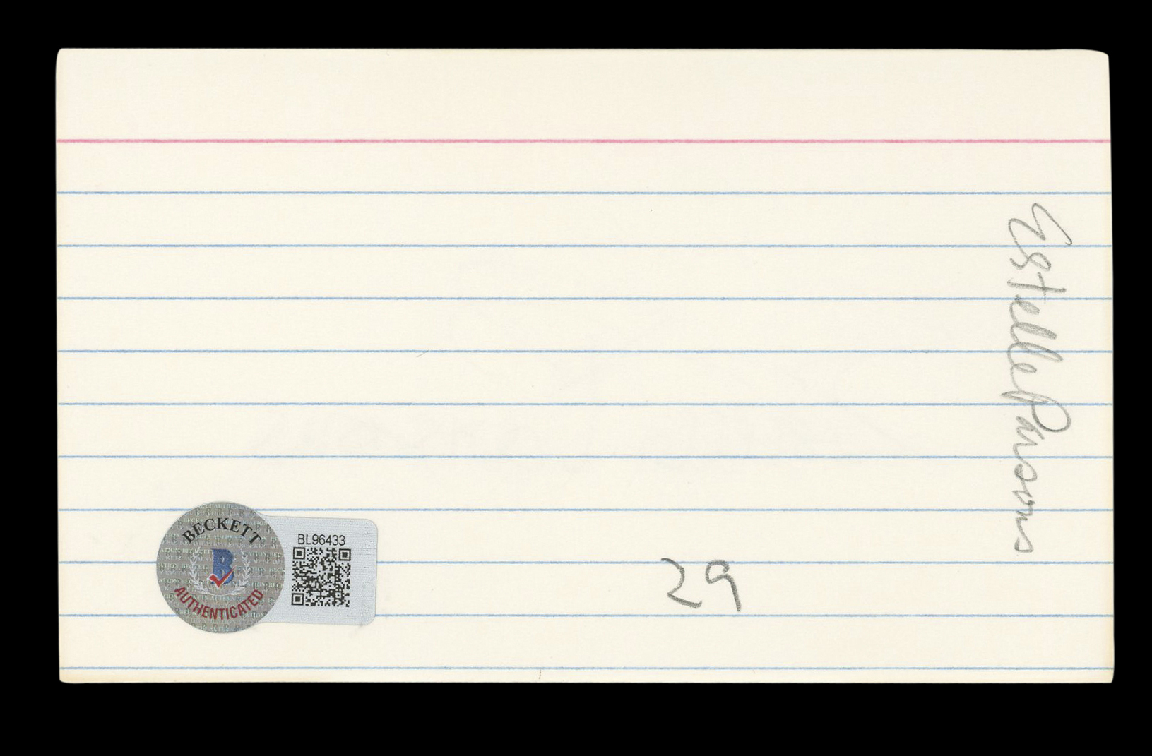 This Autographed 3x5 Index Card has been Personally Signed by Estelle Parsons of Bonnie and Clyde. This item is 100% Authentic to include a hologram by Beckett Authentication Services. This item will come with an affixed Beckett Authentication Services (BAS) authentication sticker, which includes a scannable QR code to verify authenticity. Please note that Beckett no longer provides serial-numbered COA cards, and the attached BAS sticker will serve as the complete authentication for this item. The authenticity can be verified on Beckett Authentication Services website.