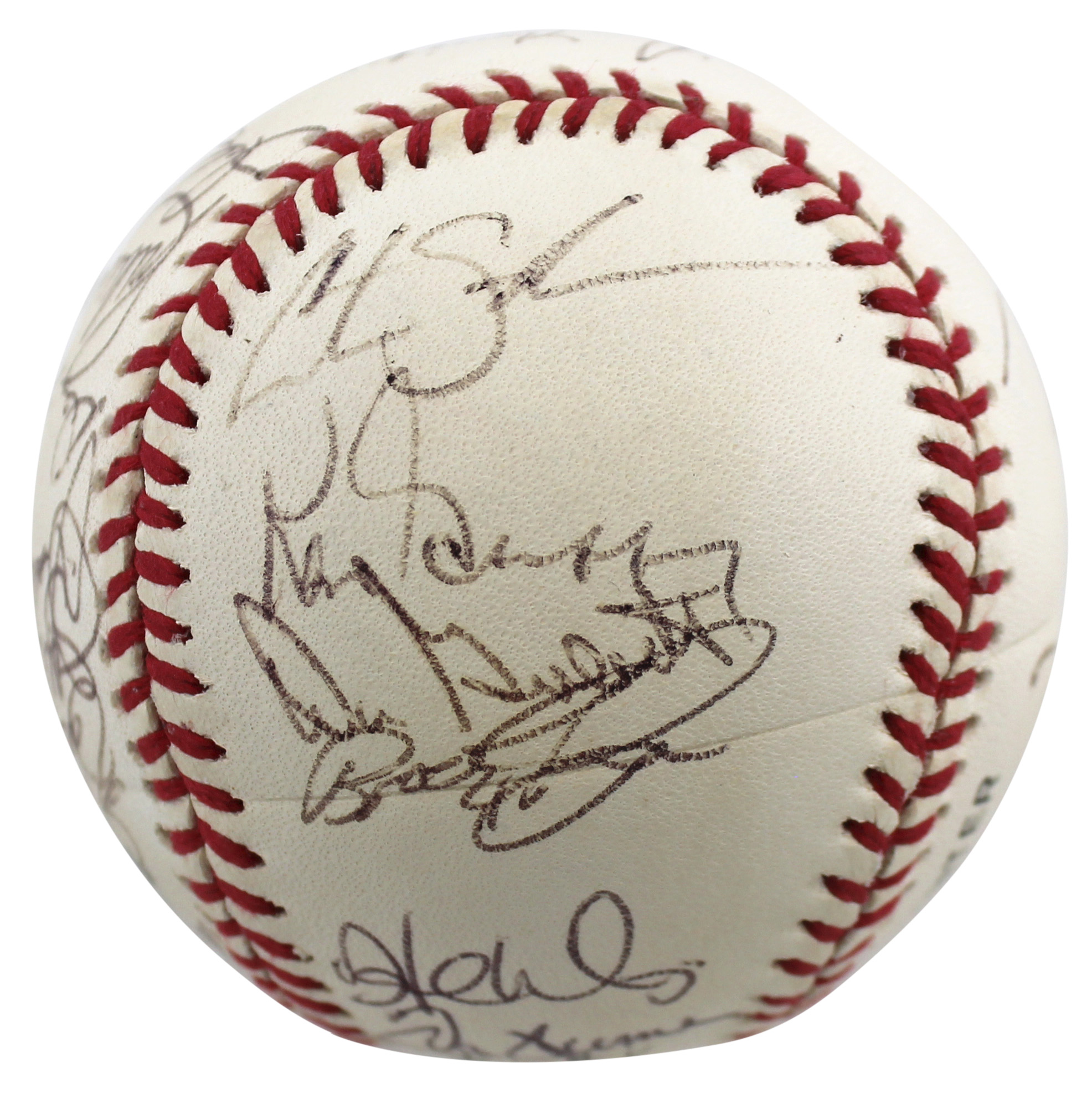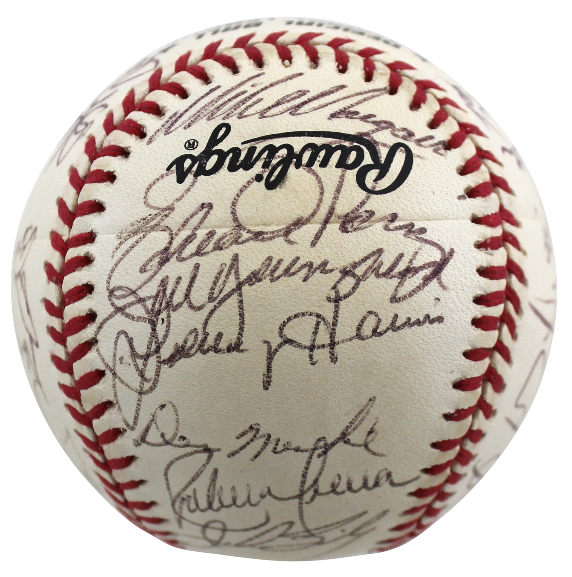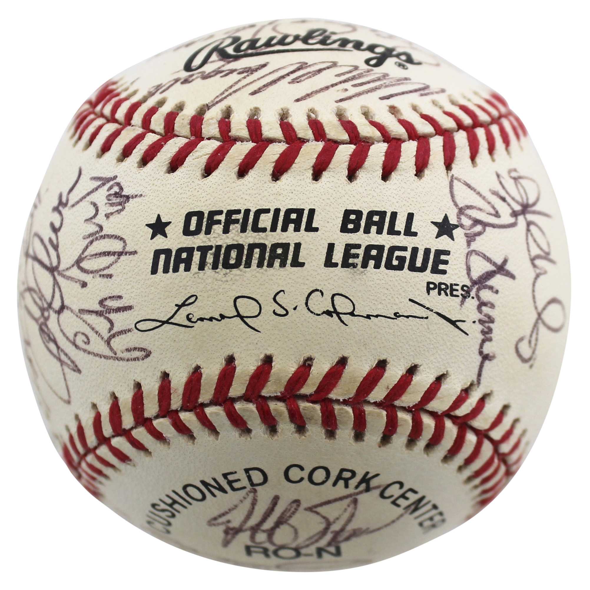 This Autographed Leonard Coleman Onl Baseball has been Personally Signed by Ray Knight, Mike Morgan, Eduardo Perez, Joel Youngblood, Lenny Harris, Denis Menke, Rub��n Sierra, John Smiley, Jeff Shaw, Eddie Taubensee, Bret Boone, Reggie Sanders, Jeff Brantley, Terry Pendleton, Joe Oliver, Dave Burba, Joey Eischen, Ricky Bones, Ken Griffey Sr., Tom Hume, Don Gullett, Chris Stynes, Hal Morris and Brook Fordyce. of the Cincinnatti Reds. This item is 100% Authentic to include a Certificate of Authenticity (COA) / hologram by Beckett Authentication Services. The authenticity can be verified on Beckett Authentication Services website.
