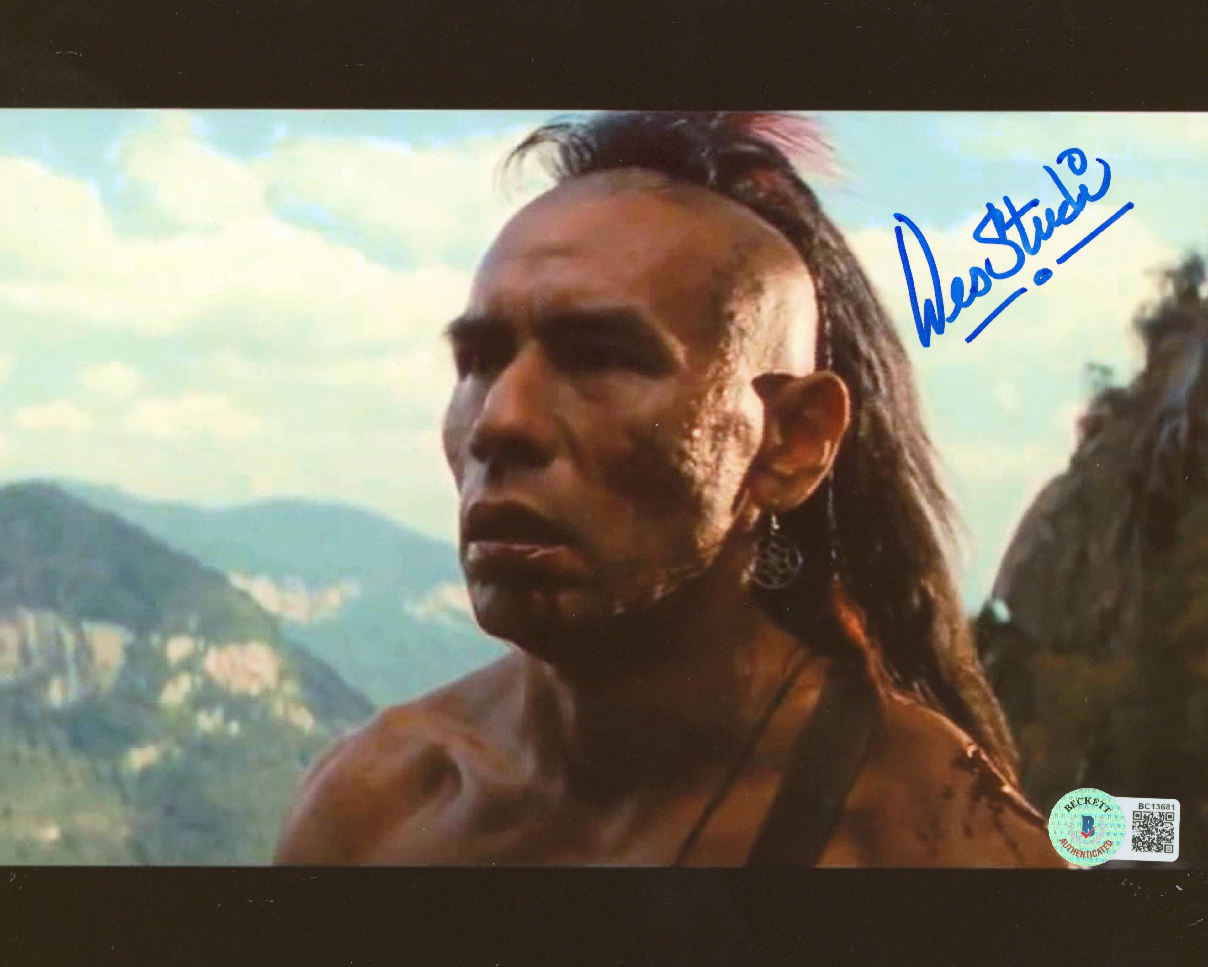 This Autographed 8x10 Photo has been Personally Signed by Wes Studi of The Last of the Mohicans. This item is 100% Authentic to include a Certificate of Authenticity (COA) / hologram by Beckett Authentication Services. The authenticity can be verified on Beckett Authentication Services website. The photo is pixelated, please refer to the high resolution scan for photos condition.