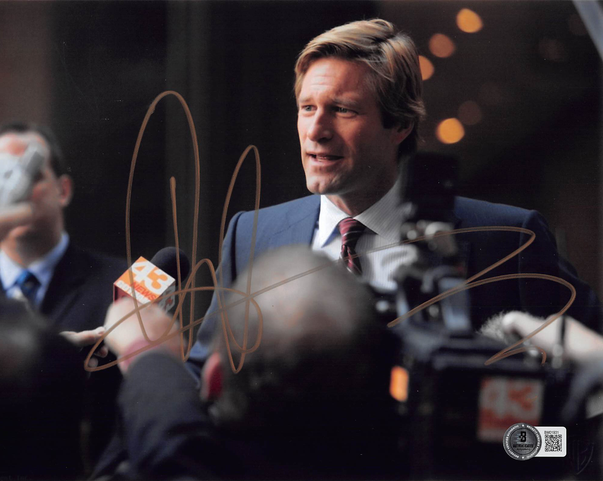 This Autographed 8x10 Photo has been Personally Signed by Aaron Eckhart of Batman The Dark Knight. This item is 100% Authentic to include a hologram by Beckett Authentication Services. This item will come with an affixed Beckett Authentication Services (BAS) authentication sticker, which includes a scannable QR code to verify authenticity. Please note that Beckett no longer provides serial-numbered COA cards, and the attached BAS sticker will serve as the complete authentication for this item. The authenticity can be verified on Beckett Authentication Services website. There is evidence of a personalization removal. Please refer to the high resolution scan for photo condition.