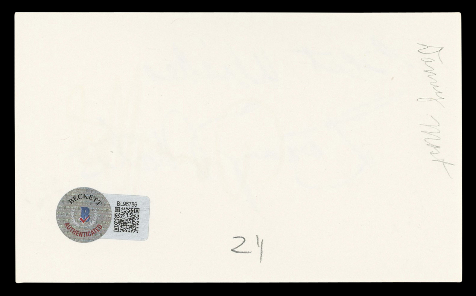This Autographed 3x5 Index Card with the inscription of "Best Wishes" has been Personally Signed by Don Most of Happy Days. This item is 100% Authentic to include a hologram by Beckett Authentication Services. This item will come with an affixed Beckett Authentication Services (BAS) authentication sticker, which includes a scannable QR code to verify authenticity. Please note that Beckett no longer provides serial-numbered COA cards, and the attached BAS sticker will serve as the complete authentication for this item. The authenticity can be verified on Beckett Authentication Services website.