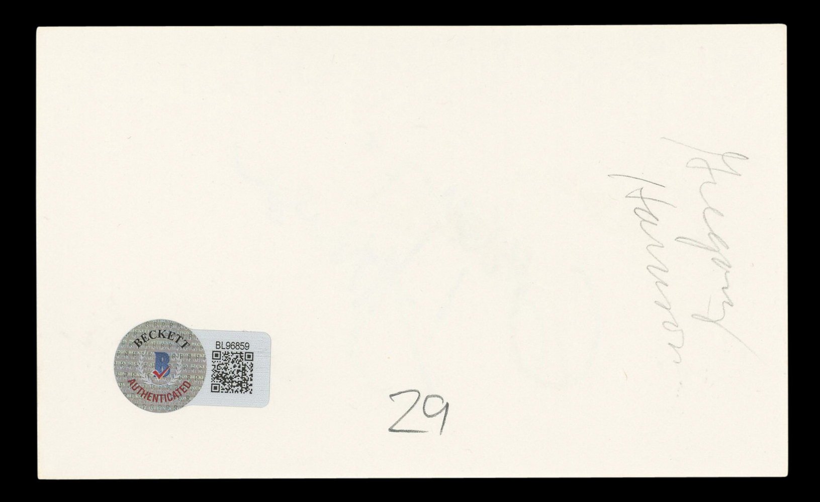 This Autographed 3x5 Index Card has been Personally Signed by Gregory Harrison of Trapper John, M.D.. This item is 100% Authentic to include a hologram by Beckett Authentication Services. This item will come with an affixed Beckett Authentication Services (BAS) authentication sticker, which includes a scannable QR code to verify authenticity. Please note that Beckett no longer provides serial-numbered COA cards, and the attached BAS sticker will serve as the complete authentication for this item. The authenticity can be verified on Beckett Authentication Services website.
