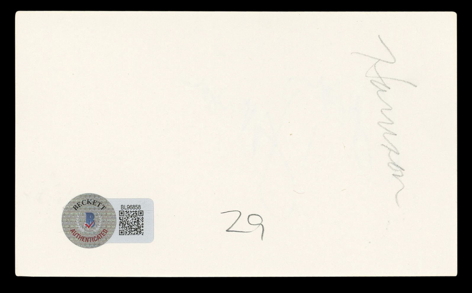 This Autographed 3x5 Index Card has been Personally Signed by Gregory Harrison of Trapper John, M.D.. This item is 100% Authentic to include a hologram by Beckett Authentication Services. This item will come with an affixed Beckett Authentication Services (BAS) authentication sticker, which includes a scannable QR code to verify authenticity. Please note that Beckett no longer provides serial-numbered COA cards, and the attached BAS sticker will serve as the complete authentication for this item. The authenticity can be verified on Beckett Authentication Services website.