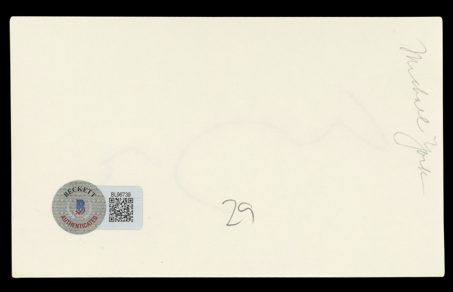This Autographed 3x5 Index Card has been Personally Signed by Michael York of Romeo + Juliet. This item is 100% Authentic to include a hologram by Beckett Authentication Services. This item will come with an affixed Beckett Authentication Services (BAS) authentication sticker, which includes a scannable QR code to verify authenticity. Please note that Beckett no longer provides serial-numbered COA cards, and the attached BAS sticker will serve as the complete authentication for this item. The authenticity can be verified on Beckett Authentication Services website.