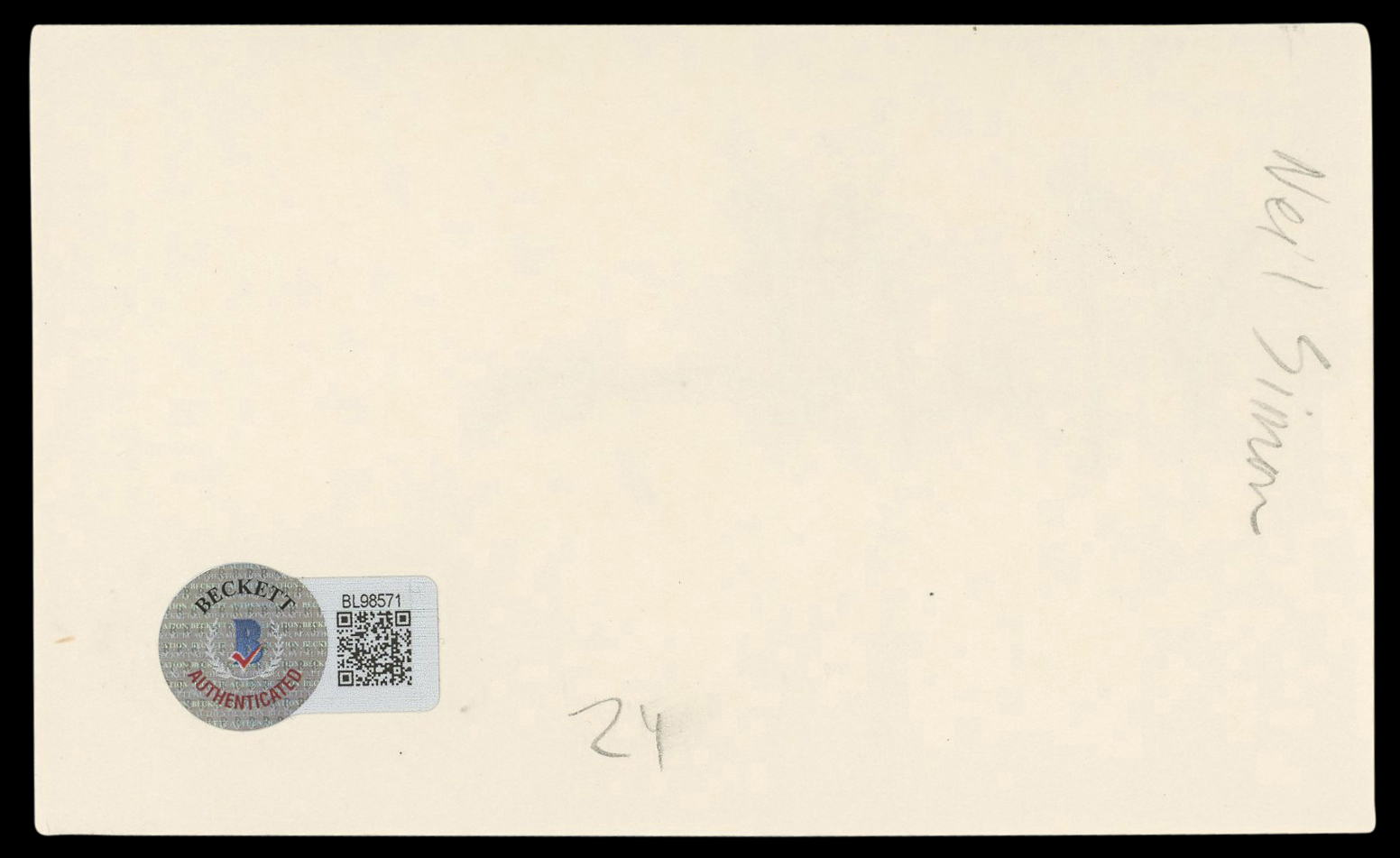 This Autographed 3x5 Index Card has been Personally Signed by Neil Simon of Barefoot in the Park. This item is 100% Authentic to include a hologram by Beckett Authentication Services. This item will come with an affixed Beckett Authentication Services (BAS) authentication sticker, which includes a scannable QR code to verify authenticity. Please note that Beckett no longer provides serial-numbered COA cards, and the attached BAS sticker will serve as the complete authentication for this item. The authenticity can be verified on Beckett Authentication Services website.