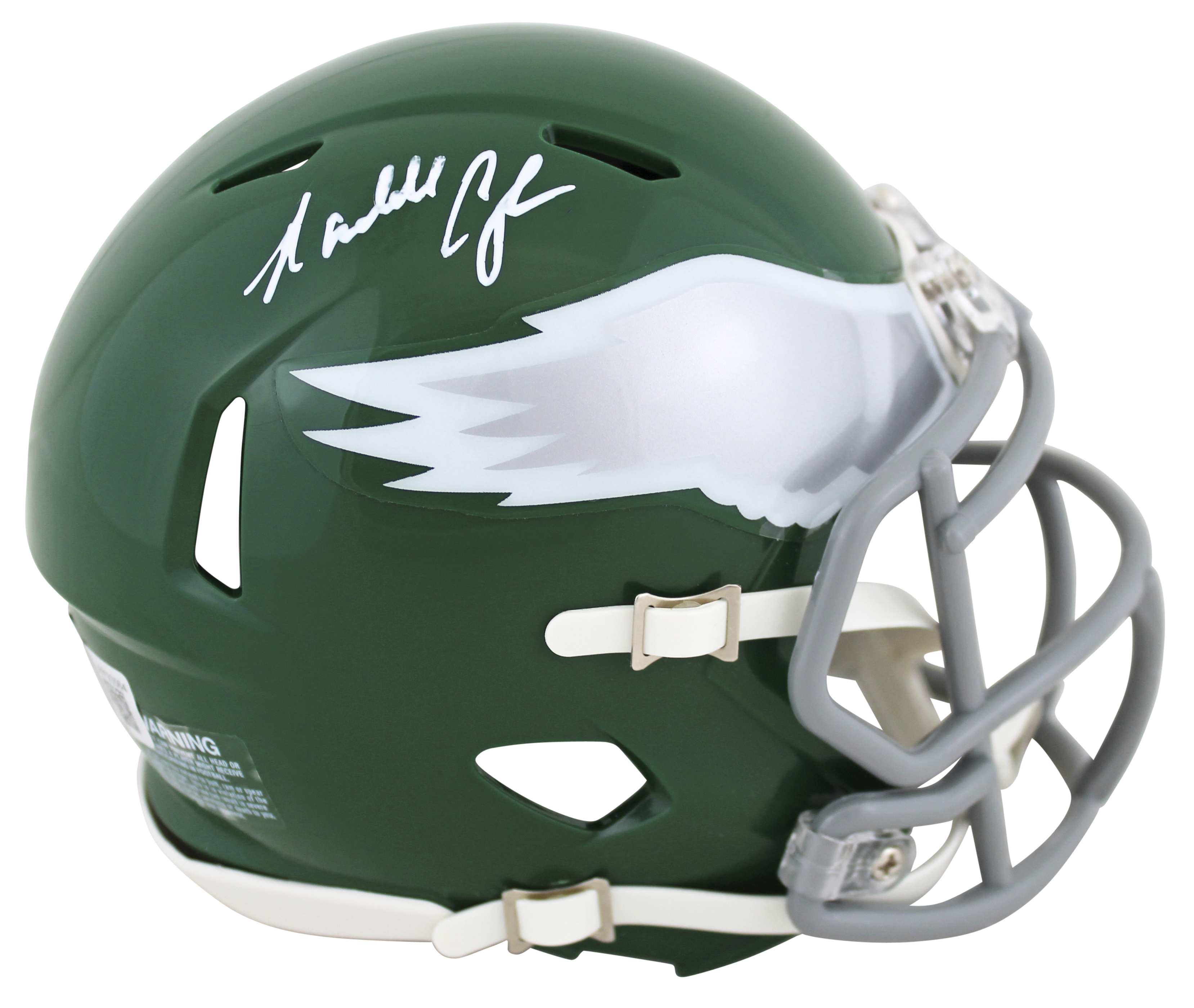 This Autographed 1974-95 Throwback Speed Mini Helmet W/ Uv Mirrored Back Acrylic Display Case has been Personally Signed by Randall Cunningham of the Philadelphia Eagles. This item is 100% Authentic to include a Certificate of Authenticity (COA) / hologram by Beckett Authentication Services. This is a BAS Witnessed Protection Program item which means a Beckett Authentication Service representative was present when this item was being signed. We conducted an autograph signing with Randall Cunningham where multiples of the same item were signed. While the photographs are representative of this item, the size, placement and strength of the signature may vary. Each item is hand signed, therefore, each autograph is unique. This item can be verified through BAS Witnessed.