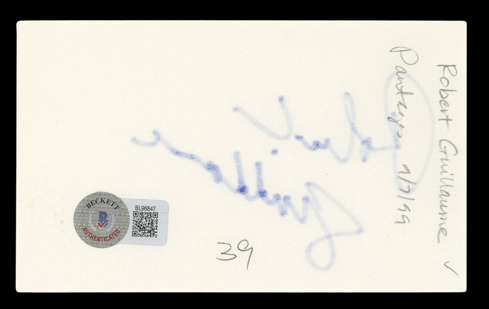 This Autographed 3x5 Index Card has been Personally Signed by Robert Guillaume of The Lion King. This item is 100% Authentic to include a hologram by Beckett Authentication Services. This item will come with an affixed Beckett Authentication Services (BAS) authentication sticker, which includes a scannable QR code to verify authenticity. Please note that Beckett no longer provides serial-numbered COA cards, and the attached BAS sticker will serve as the complete authentication for this item. The authenticity can be verified on Beckett Authentication Services website.