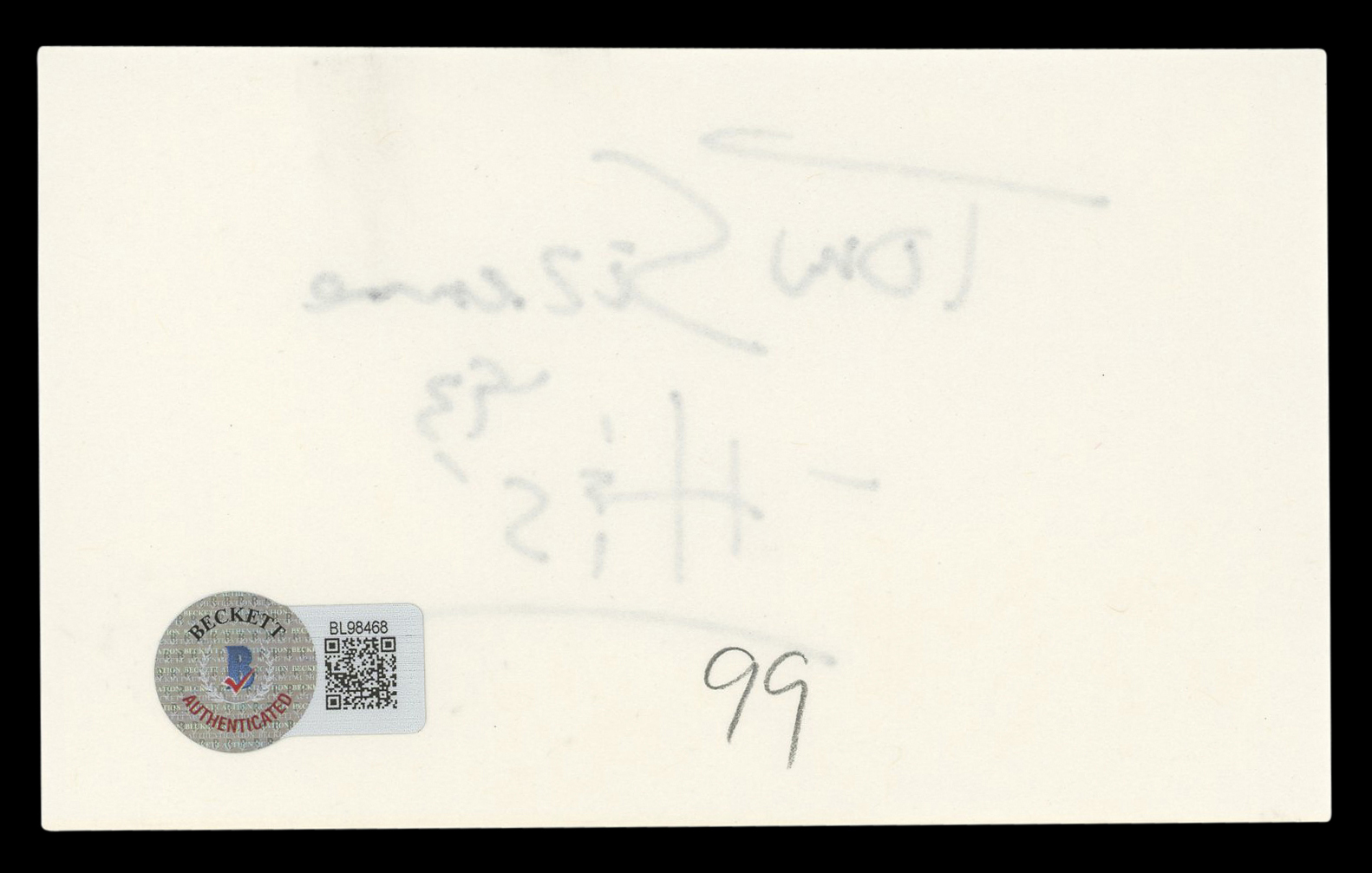 This Autographed 3x5 Index Card has been Personally Signed by Tom Sizemore of Saving Private Ryan. This item is 100% Authentic to include a hologram by Beckett Authentication Services. This item will come with an affixed Beckett Authentication Services (BAS) authentication sticker, which includes a scannable QR code to verify authenticity. Please note that Beckett no longer provides serial-numbered COA cards, and the attached BAS sticker will serve as the complete authentication for this item. The authenticity can be verified on Beckett Authentication Services website.