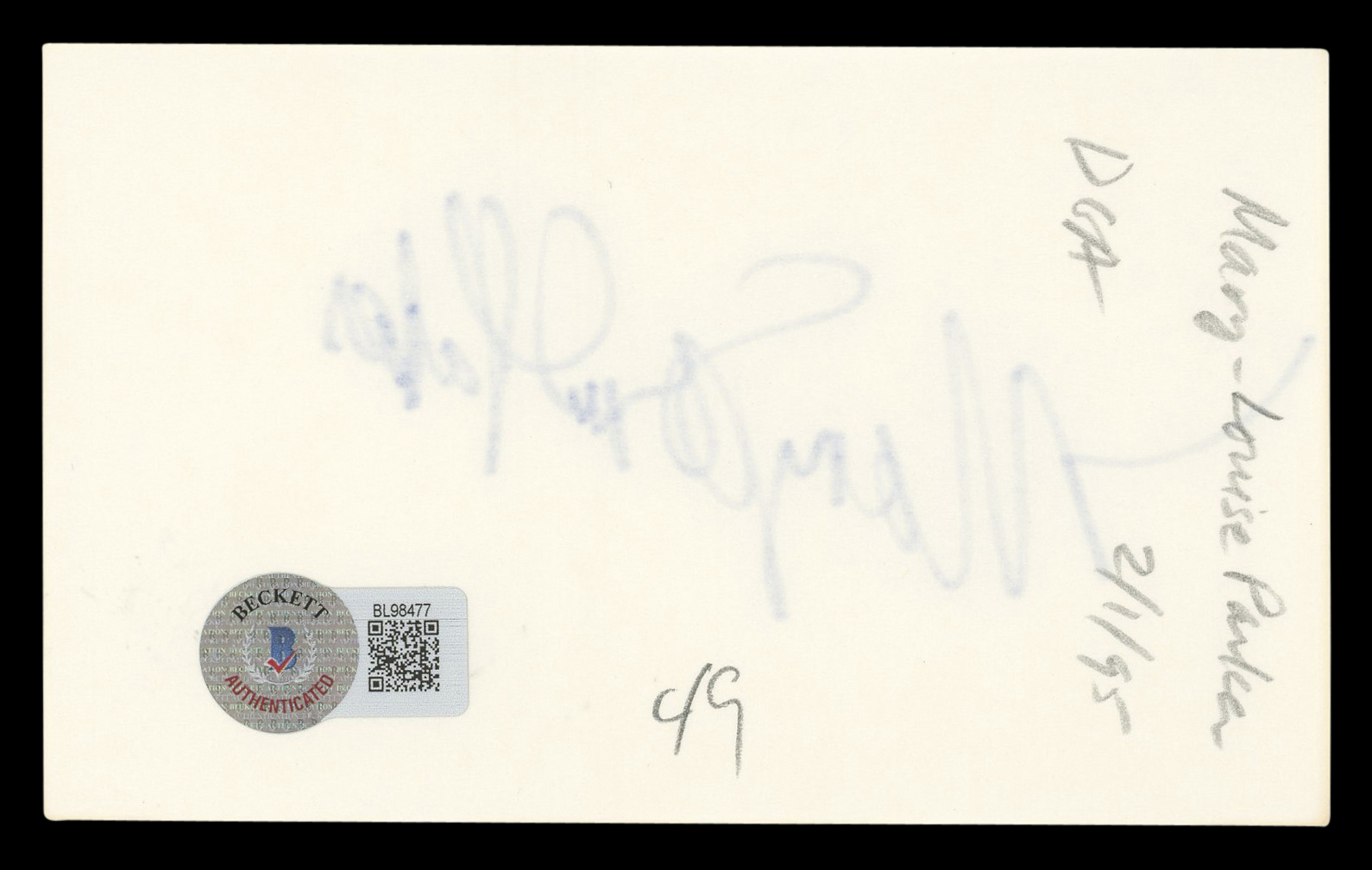 This Autographed 3x5 Index Card has been Personally Signed by Mary-Louise Parker of Weeds. This item is 100% Authentic to include a hologram by Beckett Authentication Services. This item will come with an affixed Beckett Authentication Services (BAS) authentication sticker, which includes a scannable QR code to verify authenticity. Please note that Beckett no longer provides serial-numbered COA cards, and the attached BAS sticker will serve as the complete authentication for this item. The authenticity can be verified on Beckett Authentication Services website.