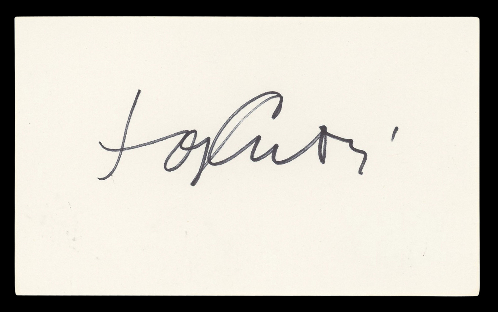 This Autographed 3x5 Index Card has been Personally Signed by Tony Curtis of Some Like It Hot. This item is 100% Authentic to include a hologram by Beckett Authentication Services. This item will come with an affixed Beckett Authentication Services (BAS) authentication sticker, which includes a scannable QR code to verify authenticity. Please note that Beckett no longer provides serial-numbered COA cards, and the attached BAS sticker will serve as the complete authentication for this item. The authenticity can be verified on Beckett Authentication Services website.