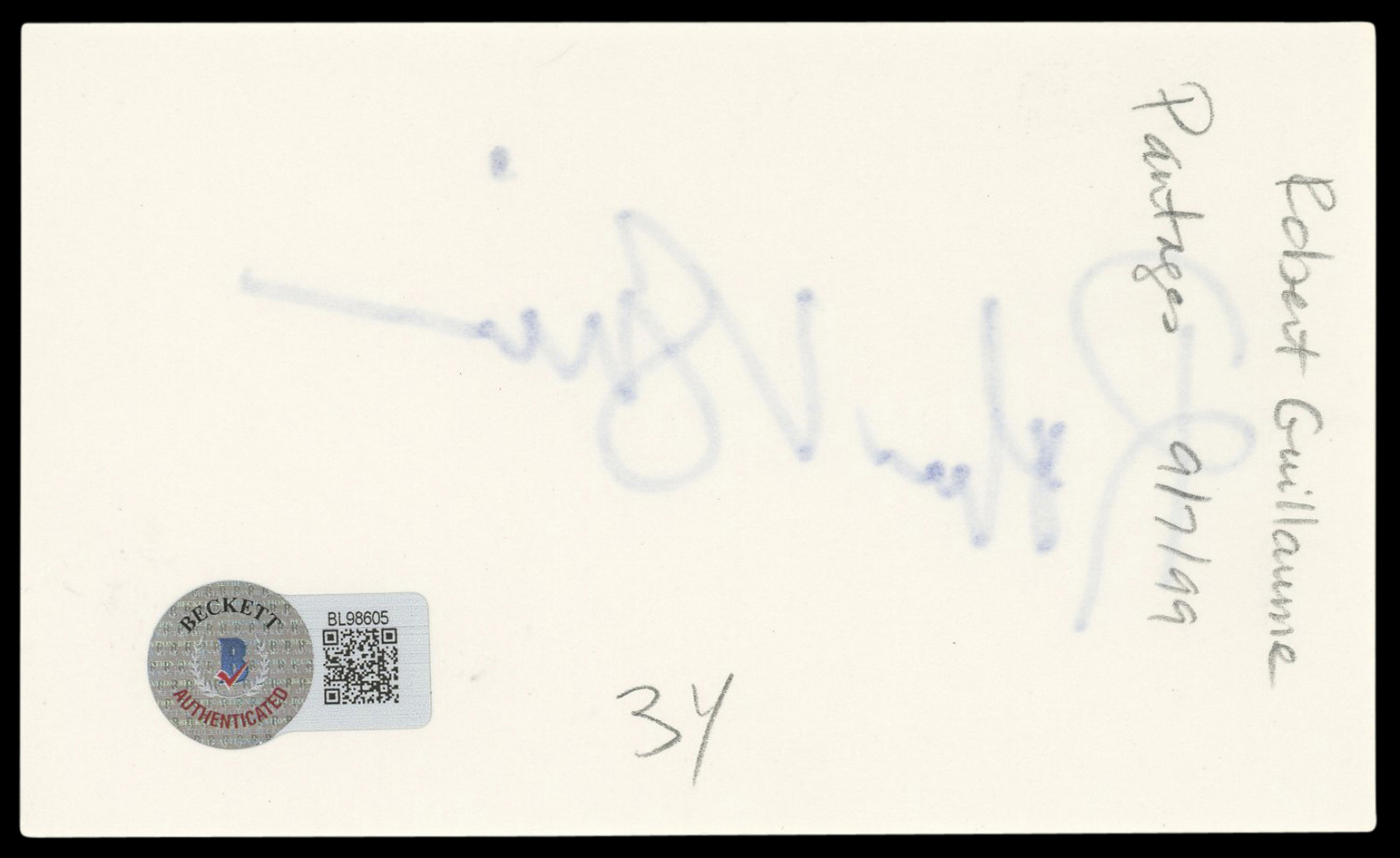 This Autographed 3x5 Index Card has been Personally Signed by Robert Guillaume of The Lion King. This item is 100% Authentic to include a hologram by Beckett Authentication Services. This item will come with an affixed Beckett Authentication Services (BAS) authentication sticker, which includes a scannable QR code to verify authenticity. Please note that Beckett no longer provides serial-numbered COA cards, and the attached BAS sticker will serve as the complete authentication for this item. The authenticity can be verified on Beckett Authentication Services website.