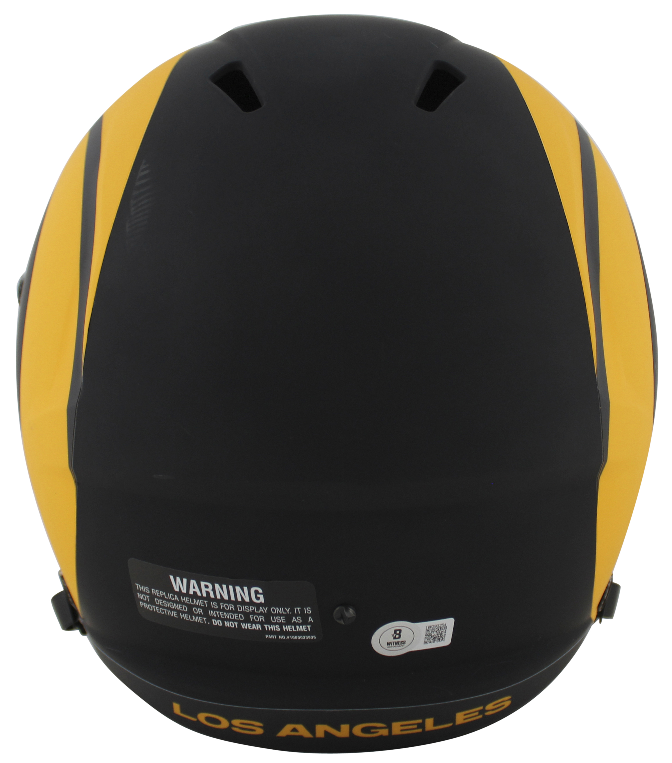 This Autographed Alternate Eclipse Riddell Full Size Speed Rep Helmet W/ Uv Mirrored Back Acrylic Display Case has been Personally Signed by Aaron Donald of the Los Angeles Rams. This item is 100% Authentic to include a hologram by Beckett Authentication Services. This item will come with an affixed Beckett Authentication Services (BAS) authentication sticker, which includes a scannable QR code to verify authenticity. Please note that Beckett no longer provides serial-numbered COA cards, and the attached BAS sticker will serve as the complete authentication for this item. This is a BAS Witnessed Protection Program item which means a Beckett Authentication Service representative was present when this item was being signed. We conducted an autograph signing with Aaron Donald where multiples of the same item were signed. While the photographs are representative of this item, the size, placement and strength of the signature may vary. Each item is hand signed, therefore, each autograph is unique. This item can be verified through BAS Witnessed.