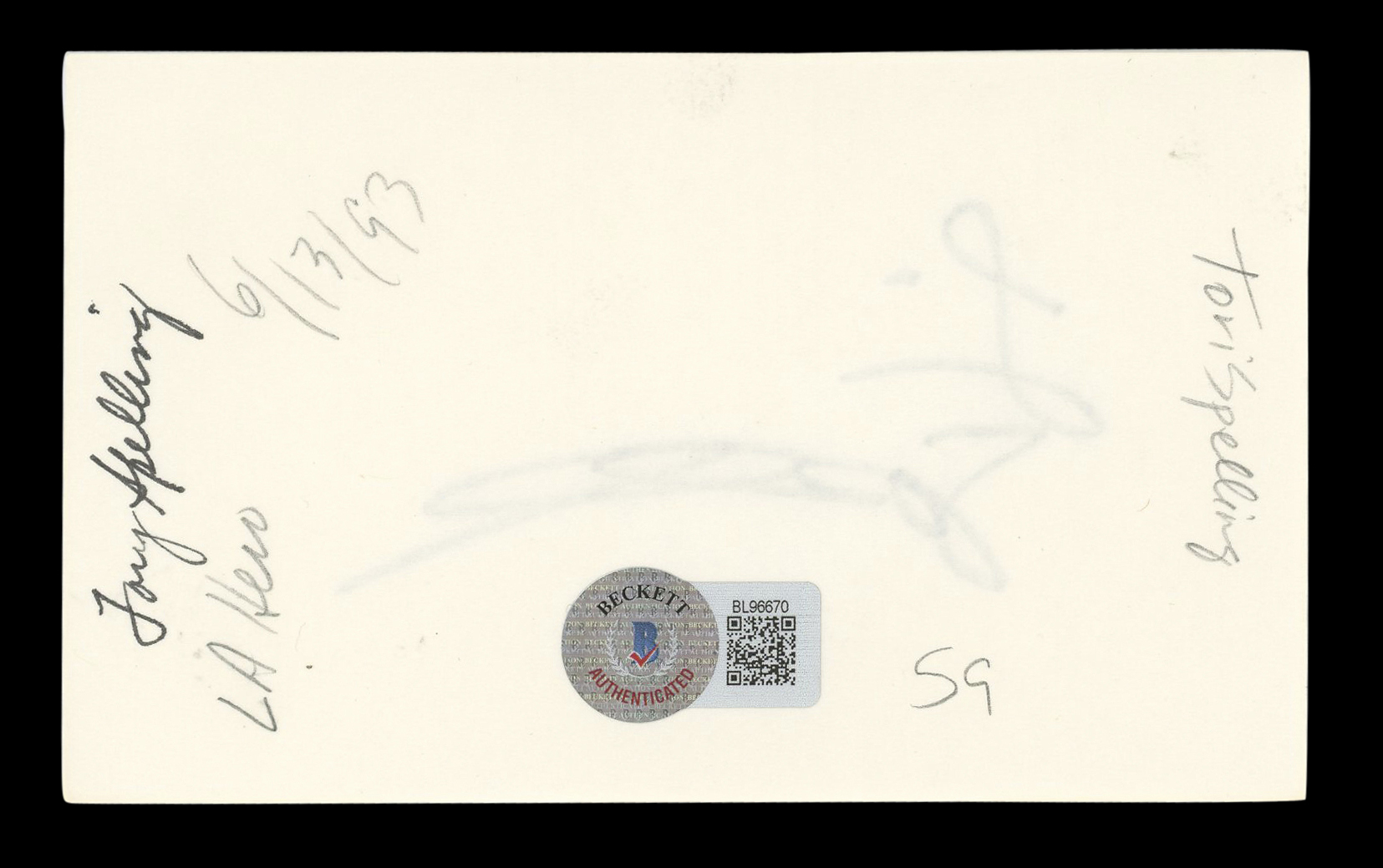 This Autographed 3x5 Index Card has been Personally Signed by Tori Spelling of Beverly Hills 90210. This item is 100% Authentic to include a hologram by Beckett Authentication Services. This item will come with an affixed Beckett Authentication Services (BAS) authentication sticker, which includes a scannable QR code to verify authenticity. Please note that Beckett no longer provides serial-numbered COA cards, and the attached BAS sticker will serve as the complete authentication for this item. The authenticity can be verified on Beckett Authentication Services website.