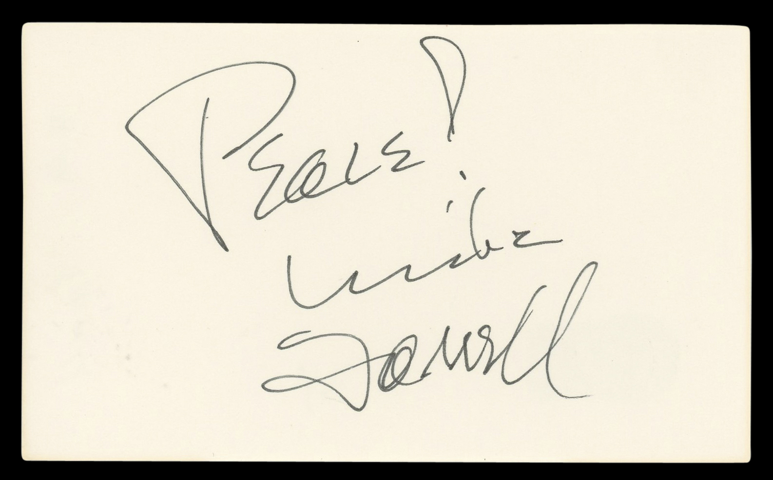 This Autographed 3x5 Index Card with the inscription of "Peace!" has been Personally Signed by Mike Farrell of M*A*S*H. This item is 100% Authentic to include a hologram by Beckett Authentication Services. This item will come with an affixed Beckett Authentication Services (BAS) authentication sticker, which includes a scannable QR code to verify authenticity. Please note that Beckett no longer provides serial-numbered COA cards, and the attached BAS sticker will serve as the complete authentication for this item. The authenticity can be verified on Beckett Authentication Services website.