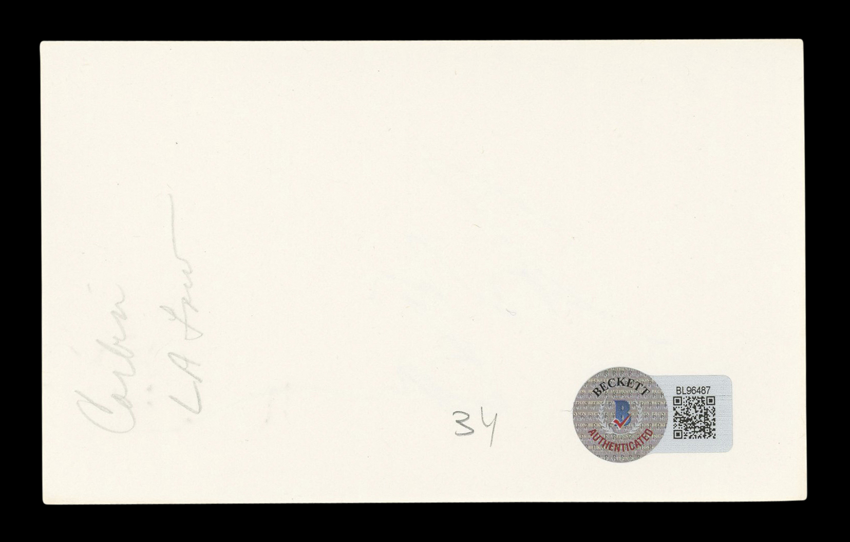 This Autographed 3x5 Index Card has been Personally Signed by Corbin Bernsen of L.A. Law. This item is 100% Authentic to include a hologram by Beckett Authentication Services. This item will come with an affixed Beckett Authentication Services (BAS) authentication sticker, which includes a scannable QR code to verify authenticity. Please note that Beckett no longer provides serial-numbered COA cards, and the attached BAS sticker will serve as the complete authentication for this item. The authenticity can be verified on Beckett Authentication Services website.