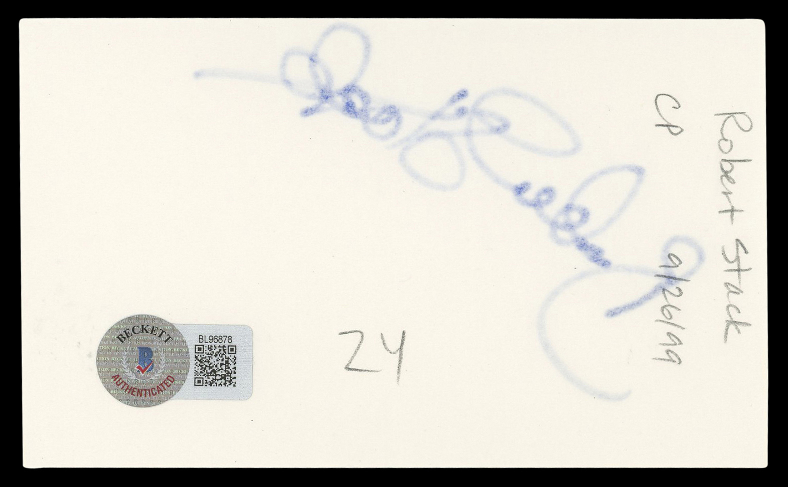Robert Stack Airplane! Authentic Signed 3x5 Index Card Autographed BAS #BL96878