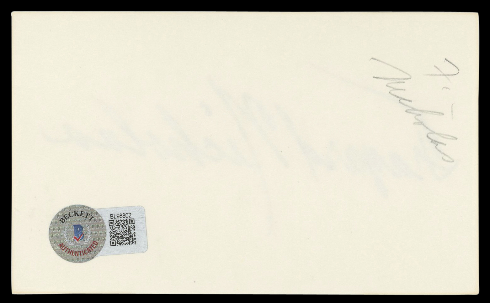 This Autographed 3x5 Index Card has been Personally Signed by Fayard Nicholas of The Pirate. This item is 100% Authentic to include a hologram by Beckett Authentication Services. This item will come with an affixed Beckett Authentication Services (BAS) authentication sticker, which includes a scannable QR code to verify authenticity. Please note that Beckett no longer provides serial-numbered COA cards, and the attached BAS sticker will serve as the complete authentication for this item. The authenticity can be verified on Beckett Authentication Services website.