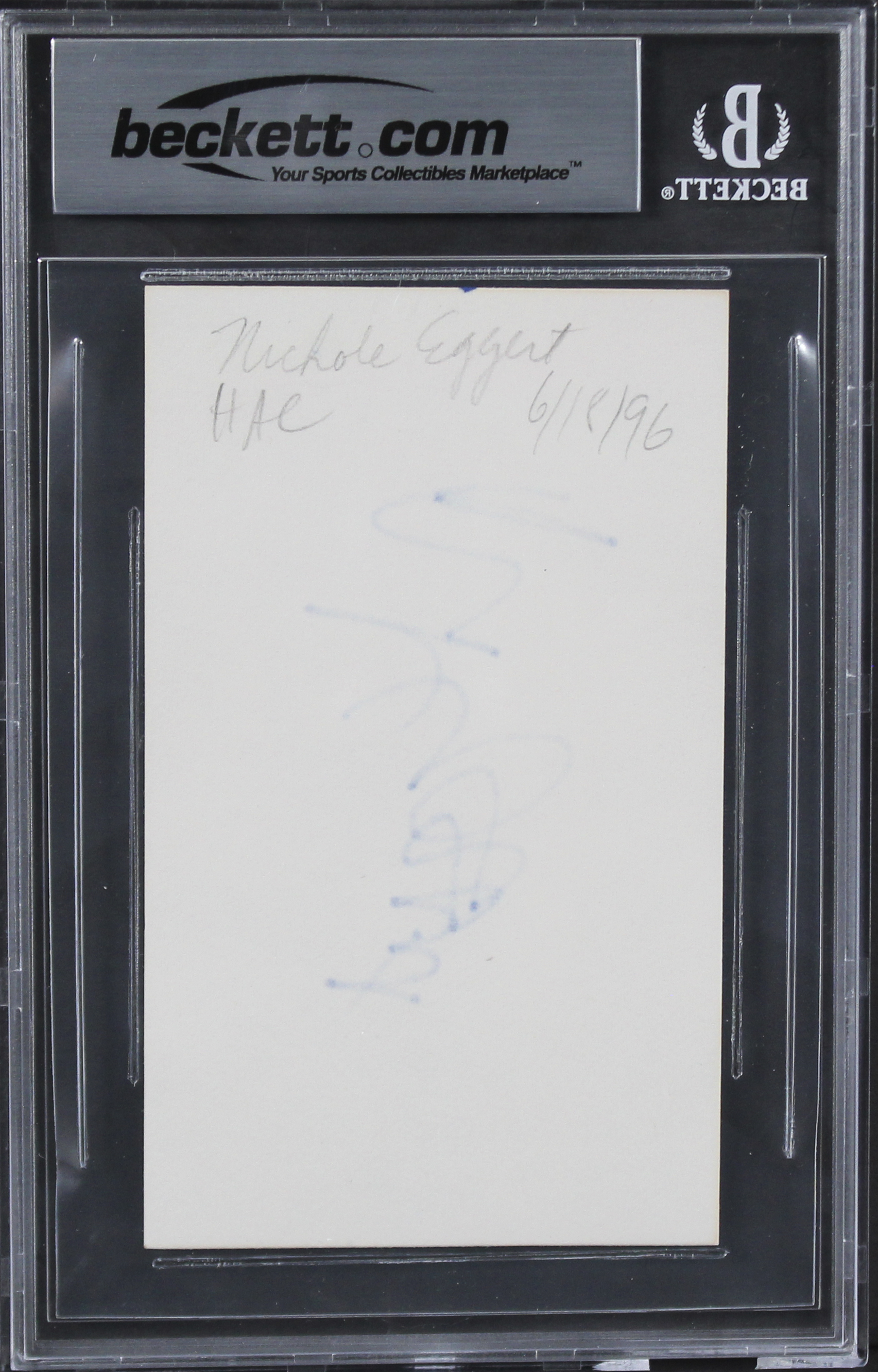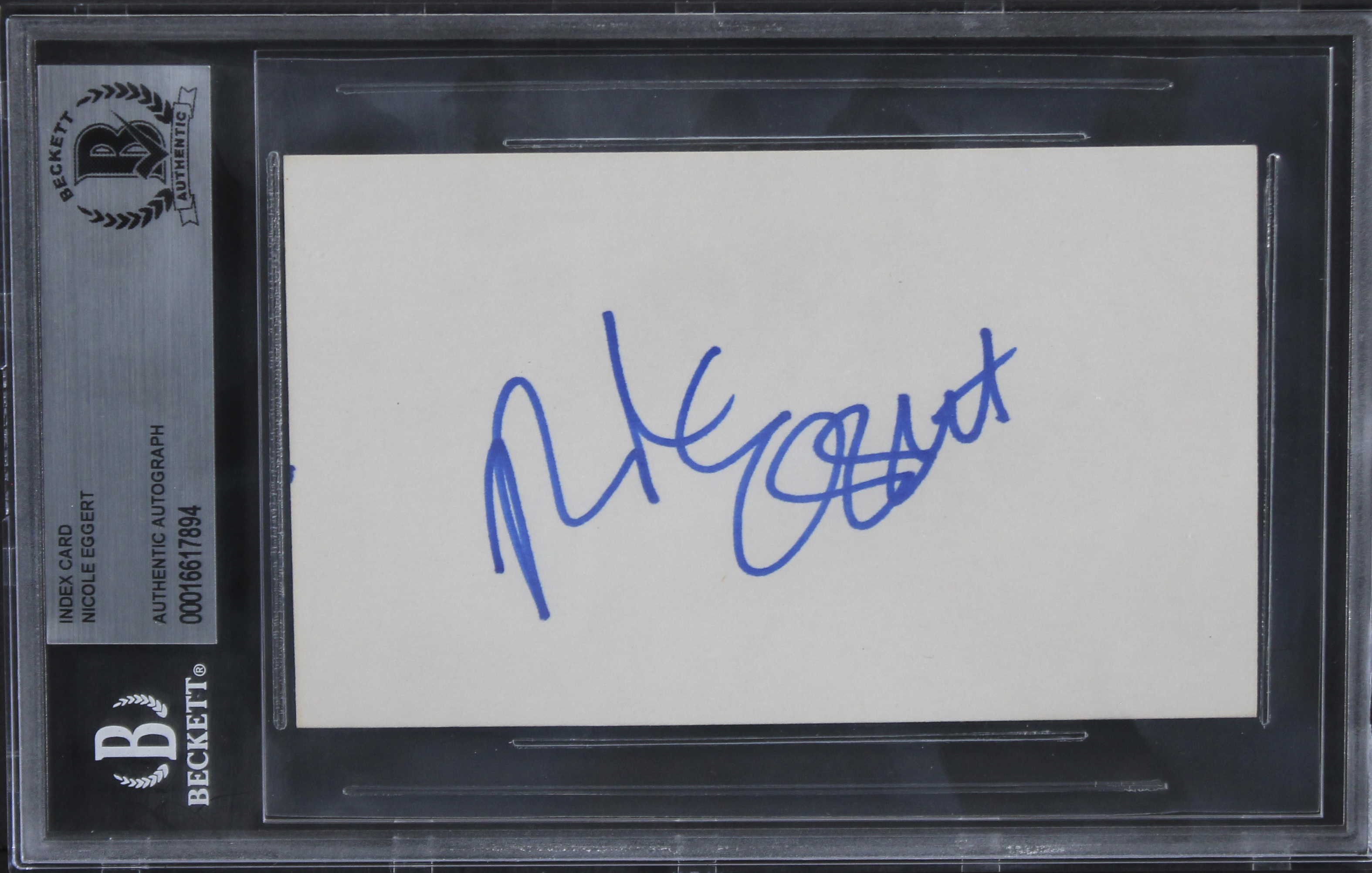 This Autographed 3x5 Index Card has been Personally Signed by Nicole Eggert of Charles in Charge. This item is 100% Authentic, it comes slabbed and authenticated by Beckett Authentication Services. We have multiples of this same item. While the photographs are representative of this item, the size, placement and strength of the signature may vary. Each item is hand signed, therefore, each autograph is unique.