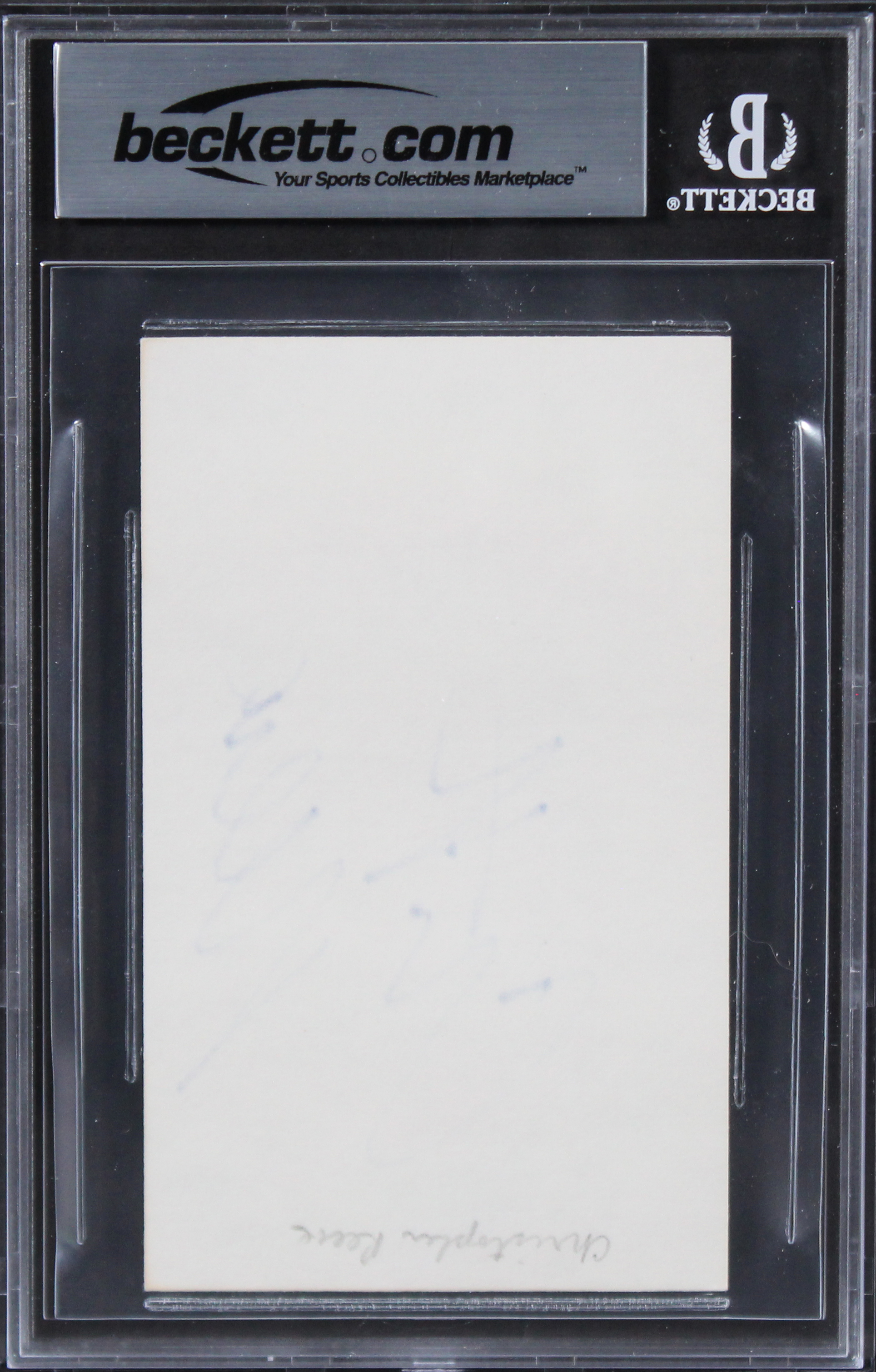 This Autographed 3x5 Index Card has been Personally Signed by Christopher Reeve of Superman. This item is 100% Authentic, it comes slabbed and authenticated by Beckett Authentication Services. The authenticity can be verified on Beckett Authentication Services website.