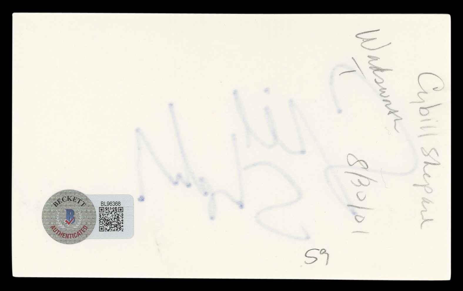 This Autographed 3x5 Index Card has been Personally Signed by Cybill Shepherd of The Last Picture Show. This item is 100% Authentic to include a hologram by Beckett Authentication Services. This item will come with an affixed Beckett Authentication Services (BAS) authentication sticker, which includes a scannable QR code to verify authenticity. Please note that Beckett no longer provides serial-numbered COA cards, and the attached BAS sticker will serve as the complete authentication for this item. The authenticity can be verified on Beckett Authentication Services website.
