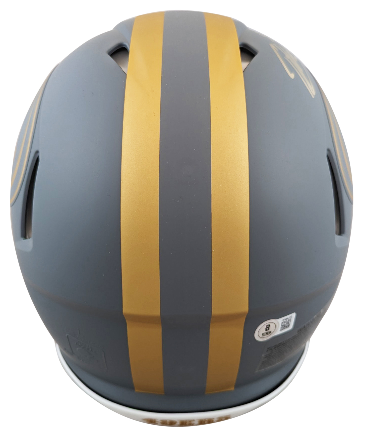 This Autographed Alternate Slate Riddell Authentic Full Size Speed Proline Helmet with the inscription of "HOF 24" has been Personally Signed by Patrick Willis of the San Francisco 49ers. This item is 100% Authentic to include a hologram by Beckett Authentication Services. This item will come with an affixed Beckett Authentication Services (BAS) authentication sticker, which includes a scannable QR code to verify authenticity. Please note that Beckett no longer provides serial-numbered COA cards, and the attached BAS sticker will serve as the complete authentication for this item. This is a BAS Witnessed Protection Program item which means a Beckett Authentication Service representative was present when this item was being signed. We conducted an autograph signing with Patrick Willis where multiples of the same item were signed. While the photographs are representative of this item, the size, placement and strength of the signature may vary. Each item is hand signed, therefore, each autograph is unique. This item can be verified through BAS Witnessed.