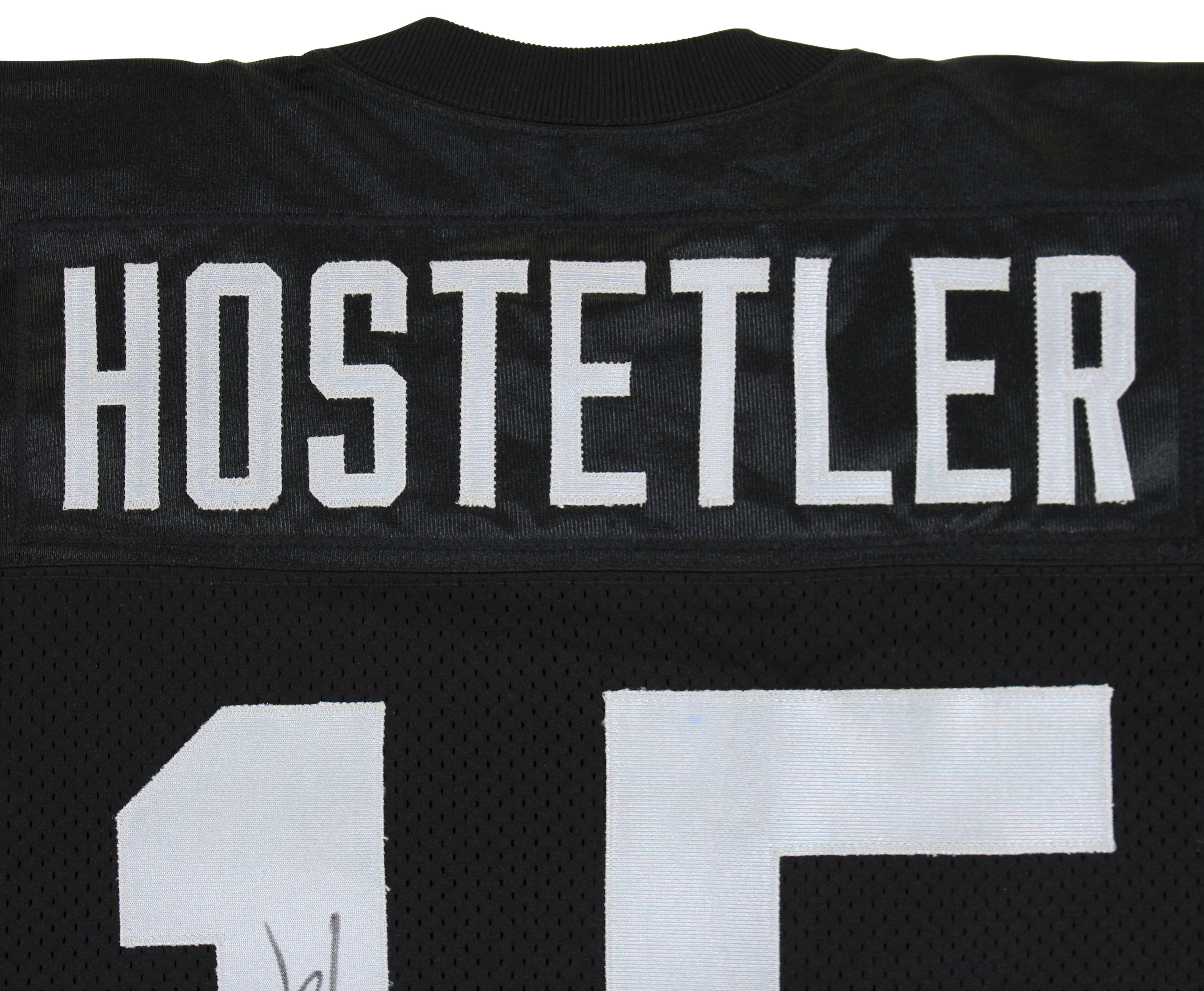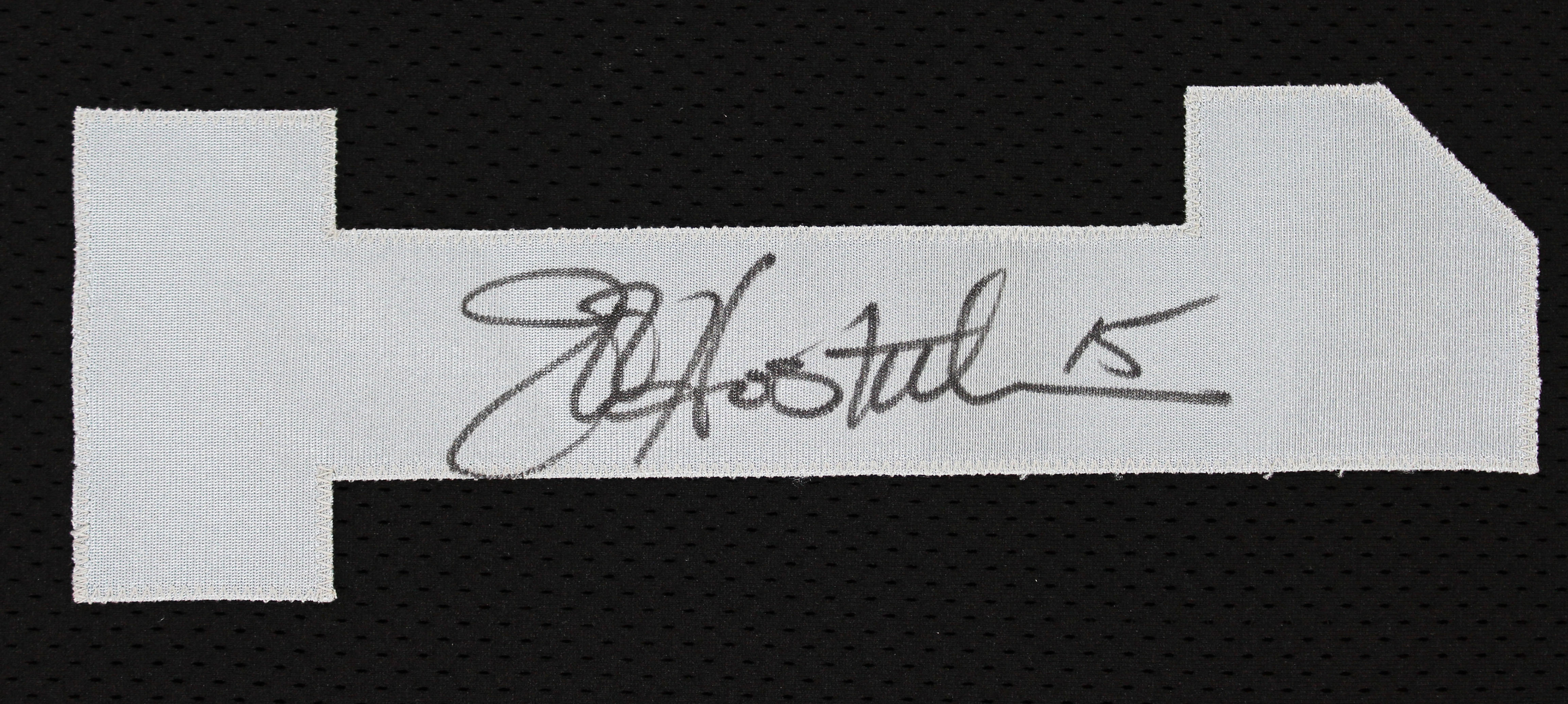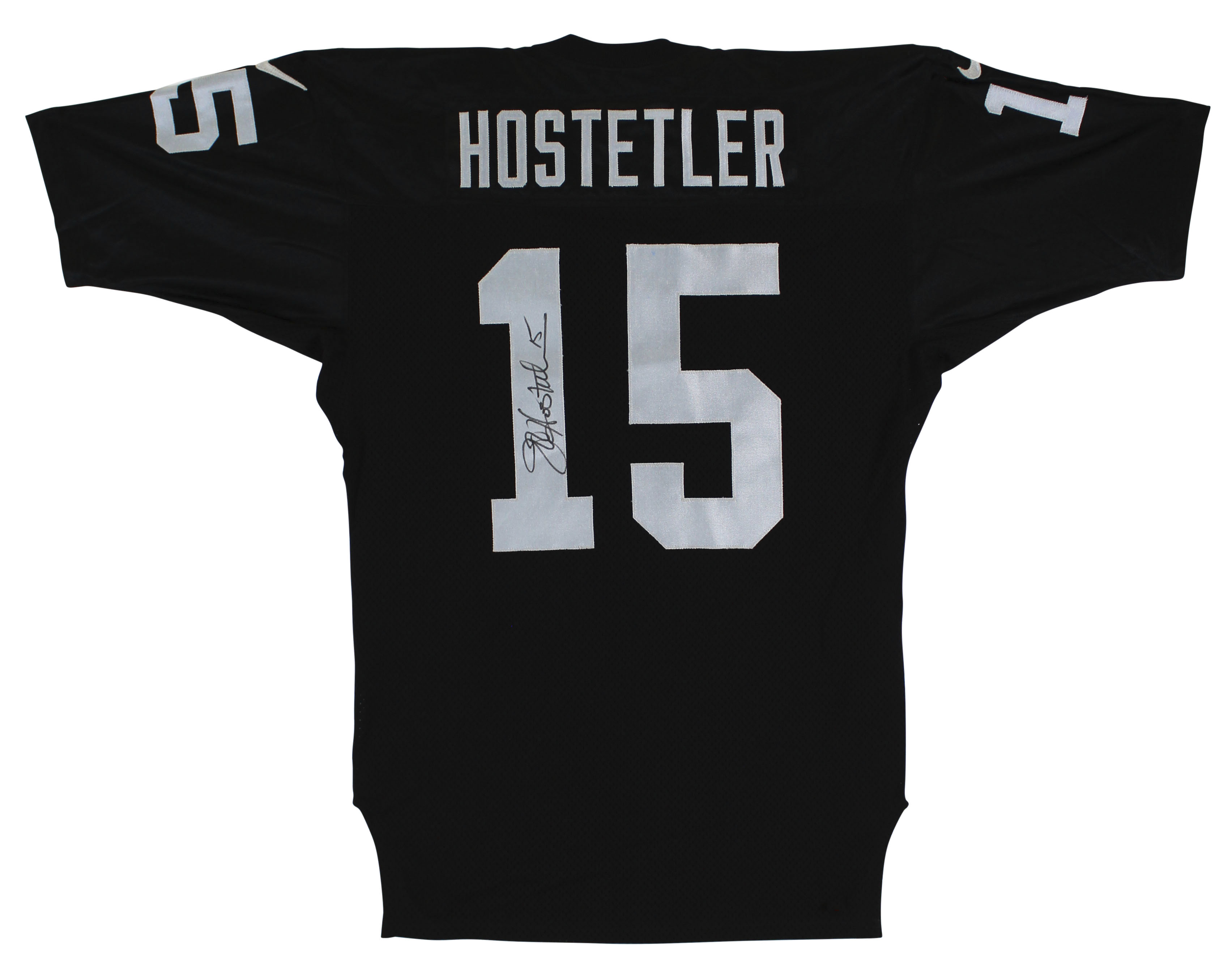 This Autographed 1993 Footaction Quarterback Challenge Game Worn Black Nike Size 46 Jersey has been Personally Signed by Jeff Hostetler of the Oakland Raiders. This item is 100% Authentic to include a Certificate of Authenticity (COA) / hologram by Beckett Authentication Services. The authenticity can be verified on Beckett Authentication Services website. The jersey comes with letter of authenticity from Shaquille O'Neal for the provenance as well. There is no paperwork on the game issue however the tagging matches known exemplars, due to that and the provenance of the item we do believe it is in fact game worn/issued.