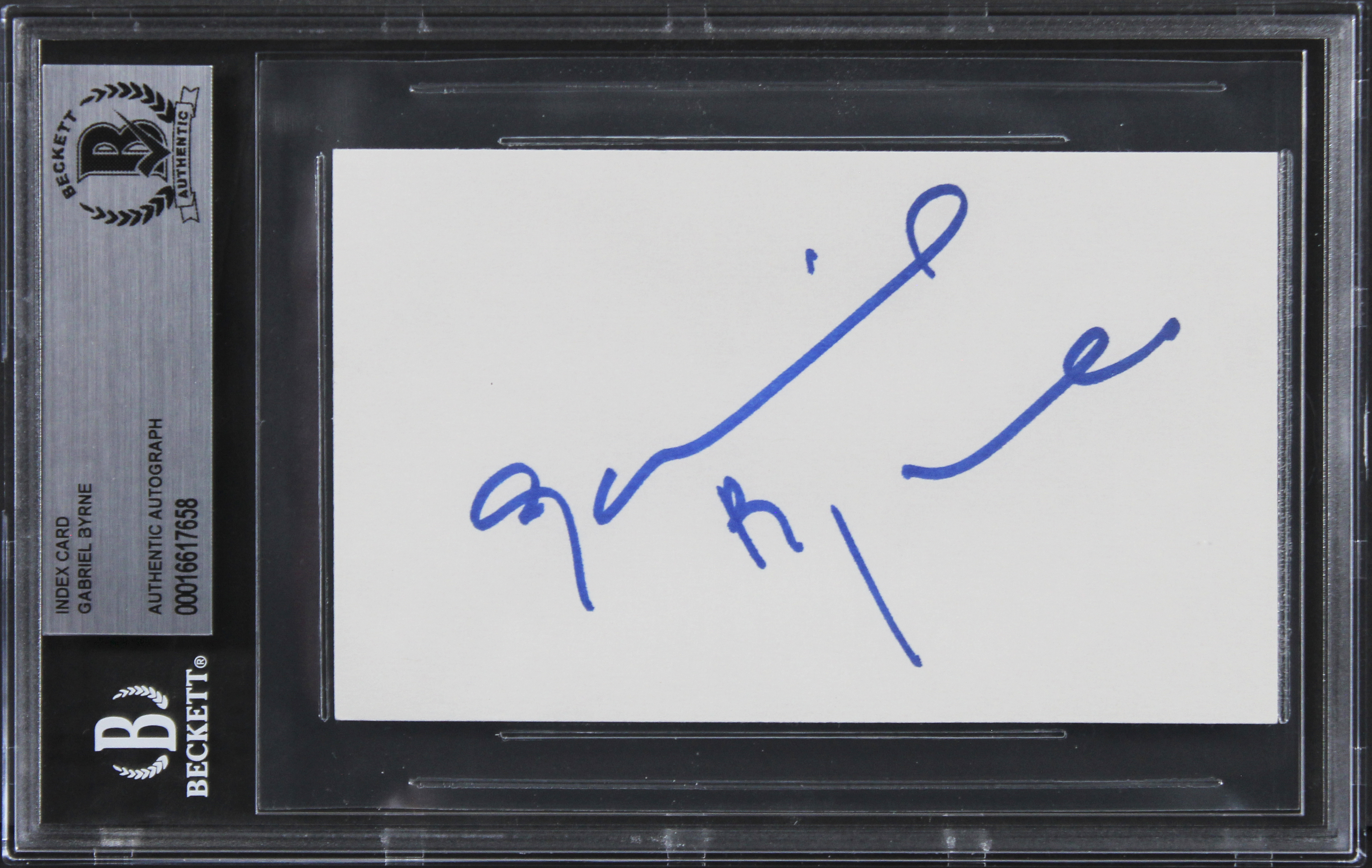This Autographed 3x5 Index Card has been Personally Signed by Gabriel Byrne of The Usual Suspects. This item is 100% Authentic, it comes slabbed and authenticated by Beckett Authentication Services. The authenticity can be verified on Beckett Authentication Services website.