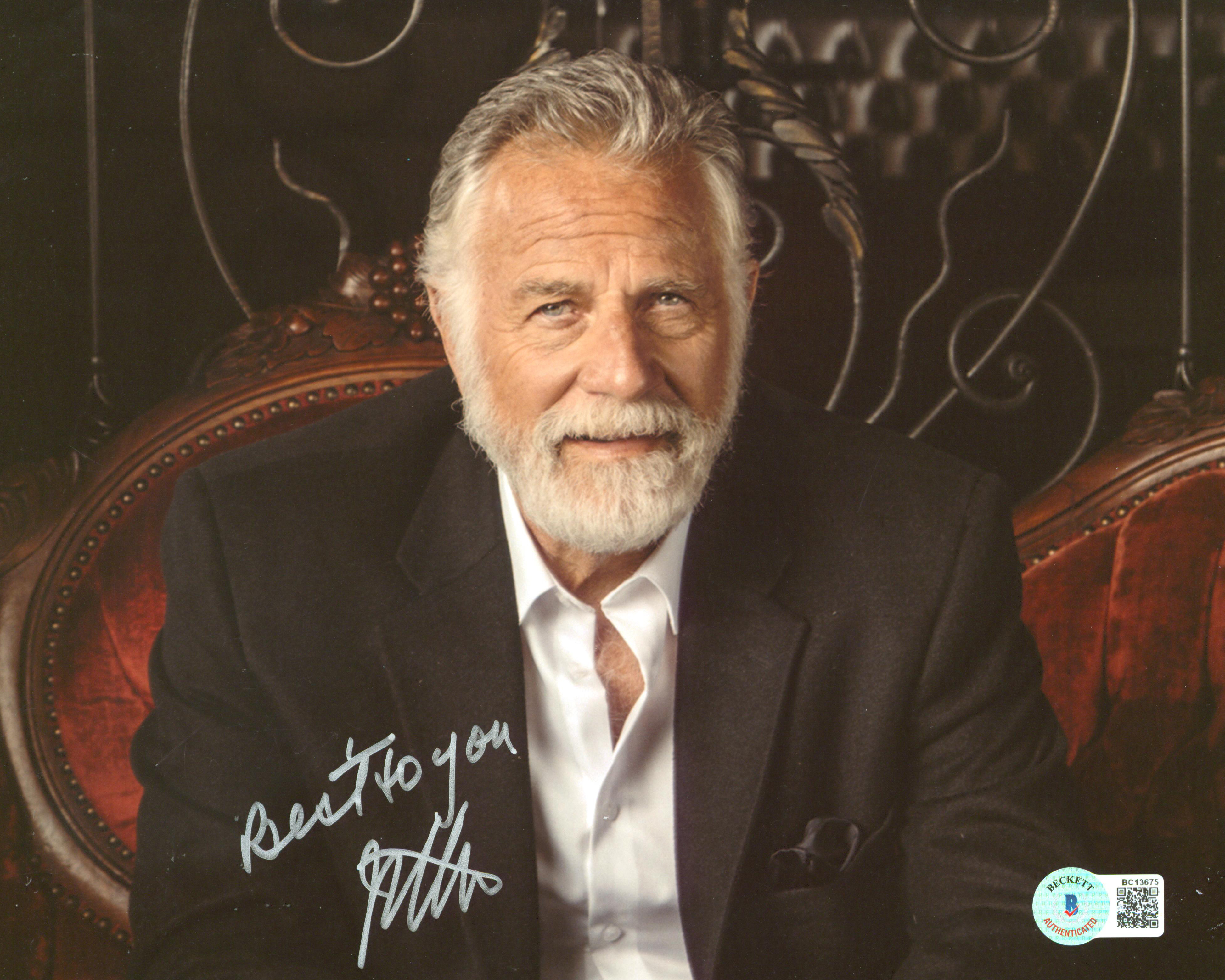 This Autographed 8x10 Photo with the inscription of "Best to You" has been Personally Signed by Jonathan Goldsmith of The Most Interesting Man in the World. This item is 100% Authentic to include a Certificate of Authenticity (COA) / hologram by Beckett Authentication Services. The authenticity can be verified on Beckett Authentication Services website. There is evidence of inscription removal. Please refer to the high resolution scan for photo condition.