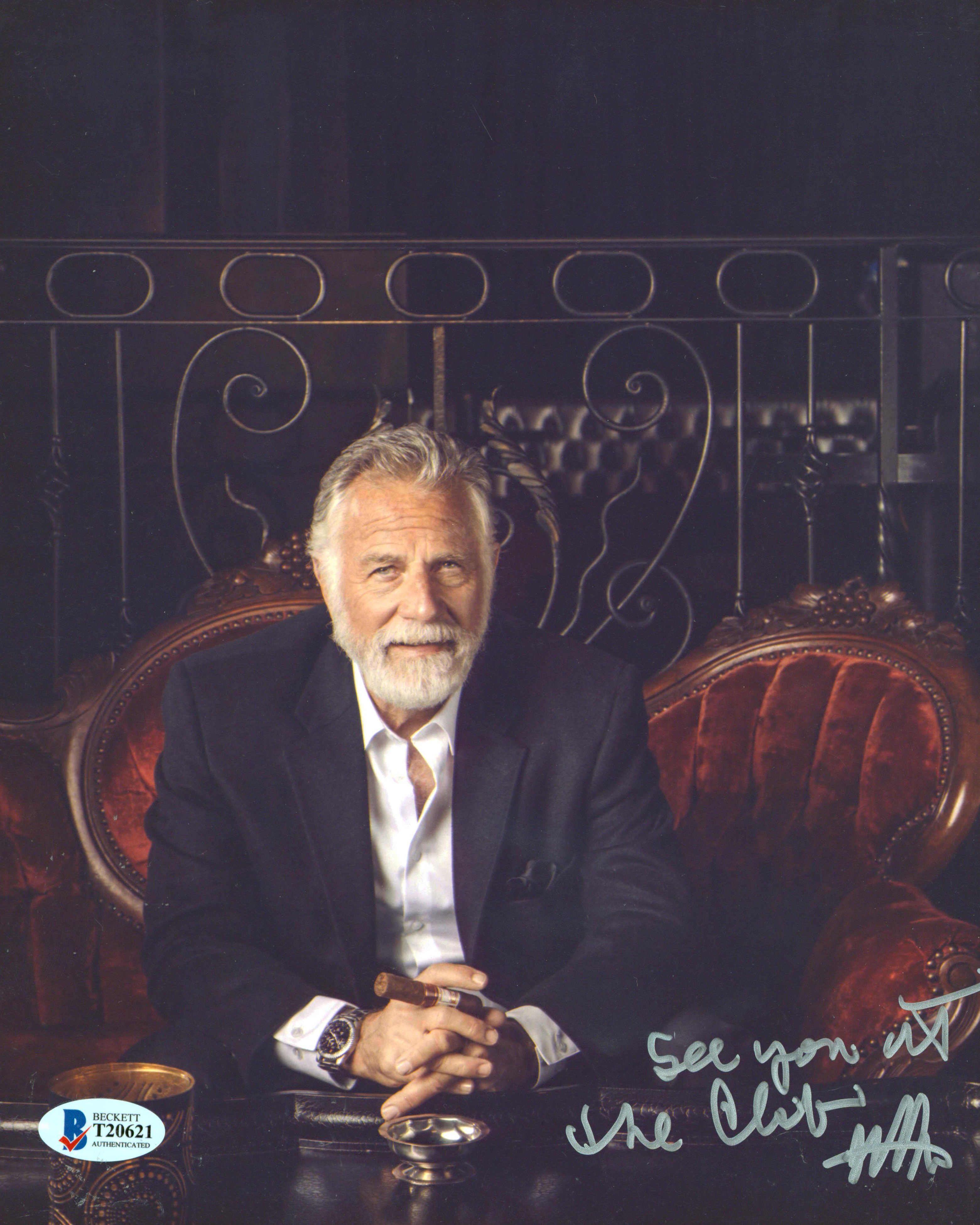 This Autographed 8x10 Photo with the inscription of "See You at The Club" has been Personally Signed by Jonathan Goldsmith of The Most Interesting Man in the World. This item is 100% Authentic to include a Certificate of Authenticity (COA) / hologram by Beckett Authentication Services. The authenticity can be verified on Beckett Authentication Services website.