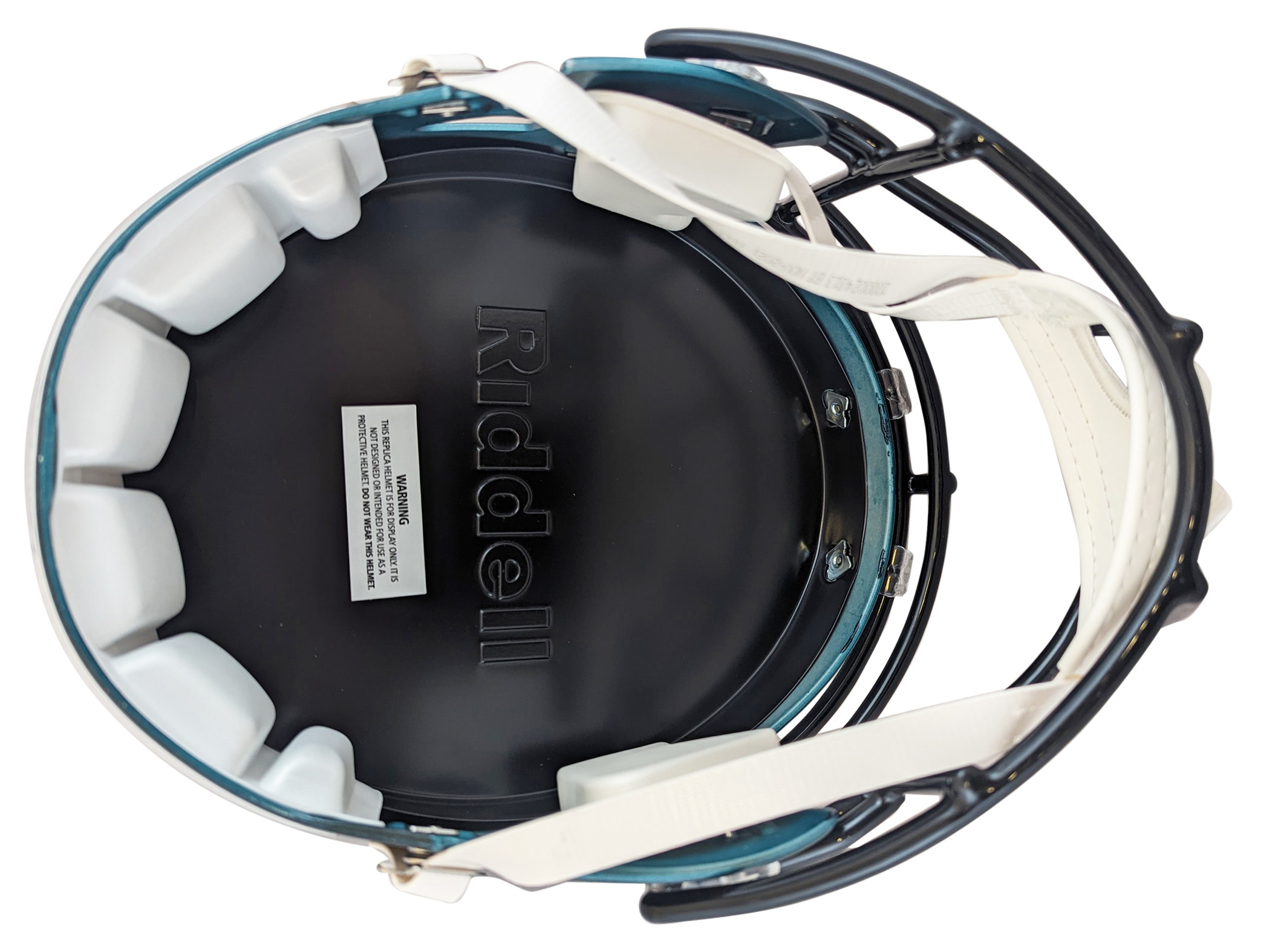 This Autographed Riddell Full Size Speed Rep Helmet has been Personally Signed by Dallas Goedert of the Philadelphia Eagles. This item is 100% Authentic to includes a numbered hologram by Fanatics. We conducted an autograph signing with Dallas Goedert where multiples of the same item were signed. While the photographs are representative of this item, the size, placement and strength of the signature may vary. Each item is hand signed, therefore, each autograph is unique. This item can be verified through Fanatics.